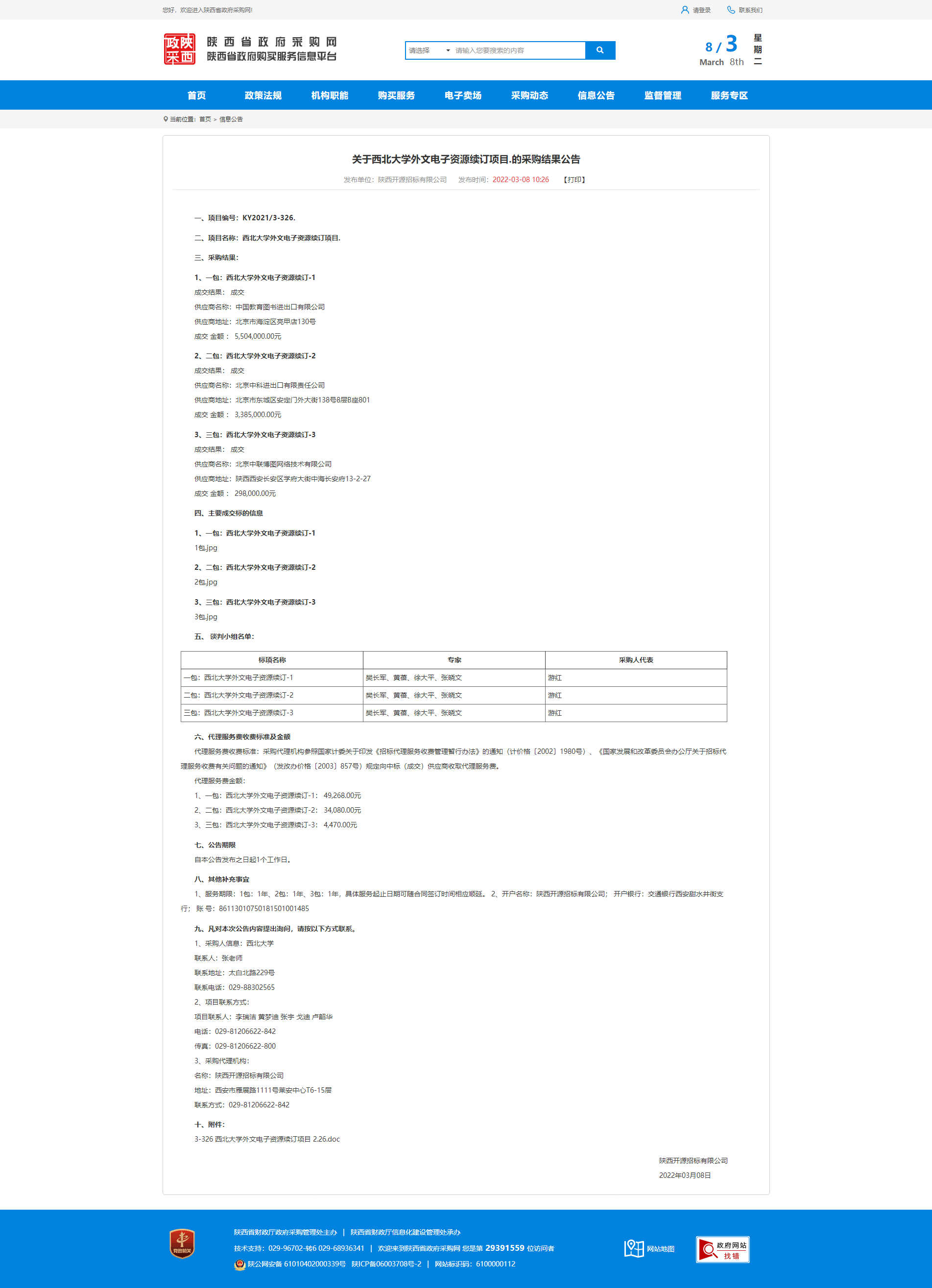 关于乐鱼网页版页面登录外文电子资源续订项目的采购结果公告
