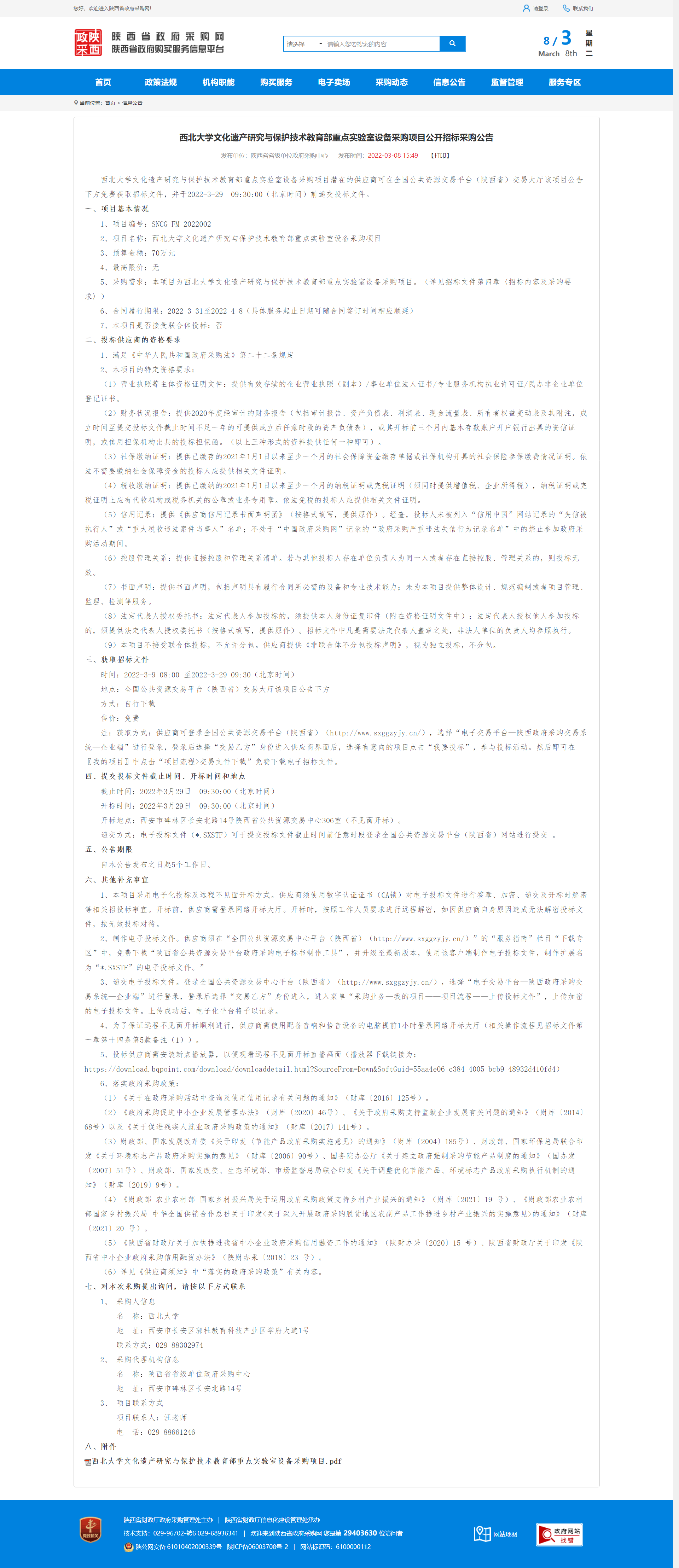 乐鱼网页版页面登录文化遗产研究与保护技术教育部重点实验室设备采购项目公开招标采购公告 作者: 编辑:薛利娟 时间:2022-03-08 原公告链接:http://www.ccgp-shaanxi.gov.cn/notice/noticeDetail.do?noticeguid=8a85be387e22c8ad017f687dcc81045b