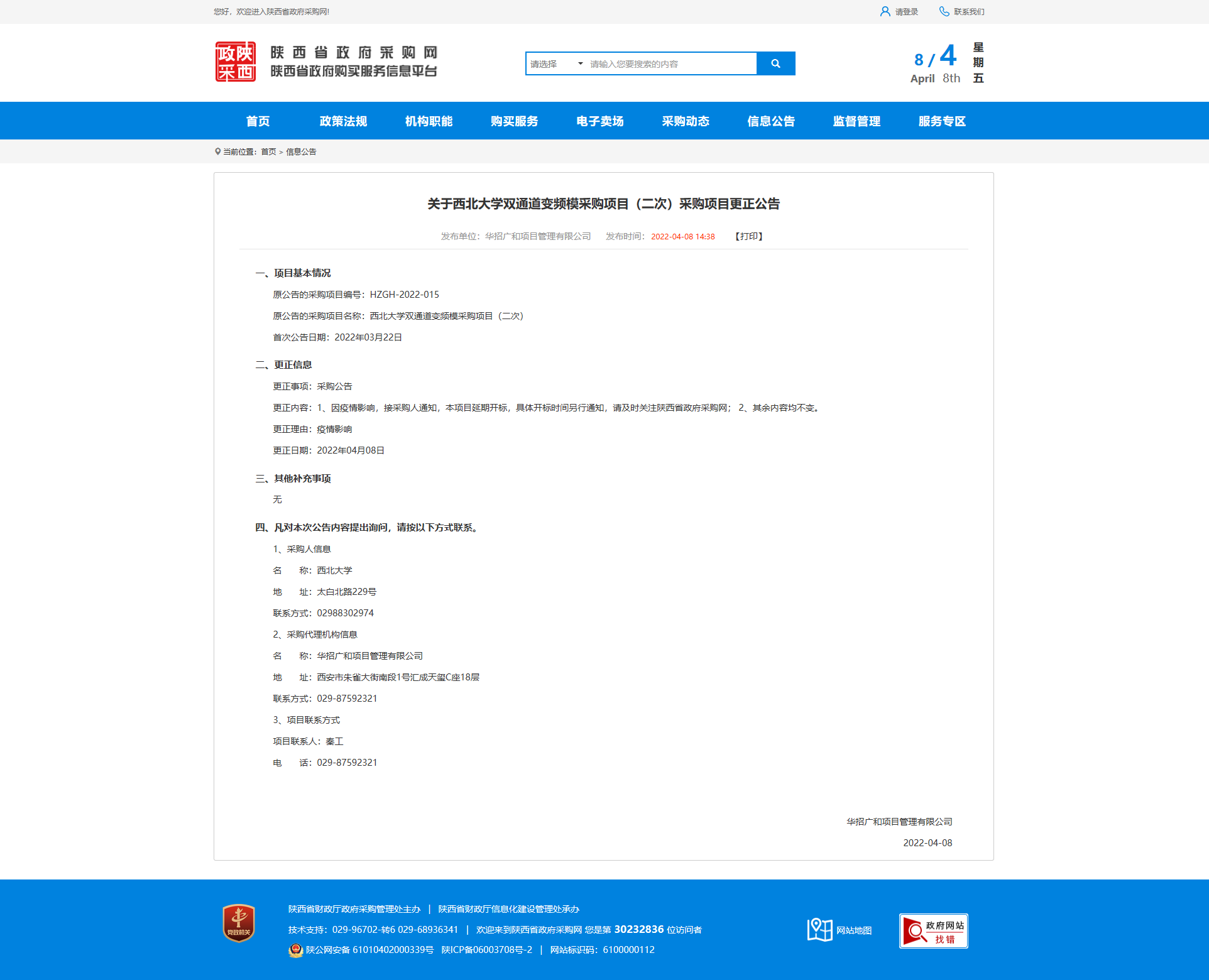 关于乐鱼网页版页面登录双通道变频模采购项目(二次)采购项目更正公告 作者: 编辑:薛利娟 时间:2022-04-08 原公告链接:http://113.200.80.230/notice/noticeDetail.do?noticeguid=8a85be347fe4a76e018007e0548720b9