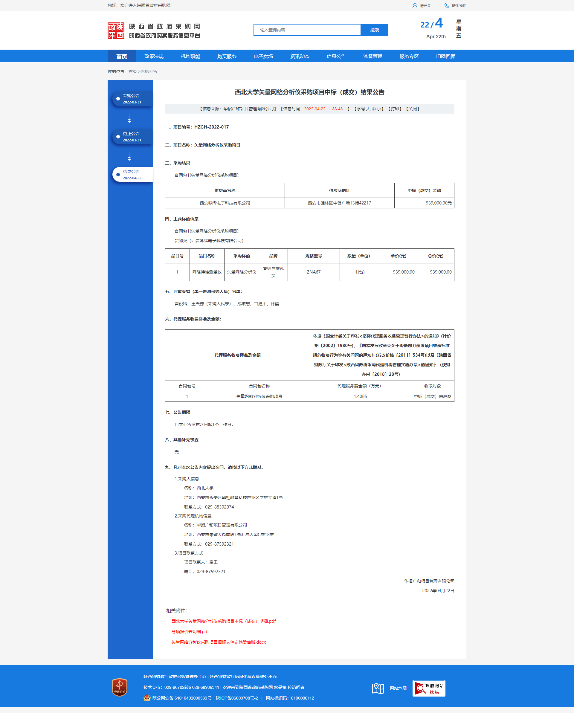 乐鱼网页版页面登录矢量网络分析仪采购项目中标(成交)结果公告 作者: 编辑:薛利娟 时间:2022-04-22 原公告链接:http://www.ccgp-shaanxi.gov.cn/freecms/site/shaanxi/ggxx/info/2022/8a69c3a2803c3c1c01804f4570841746.html?noticeType=001021¬iceId=9725019f-c1ed-11ec-9a8e-08c0eb20c666