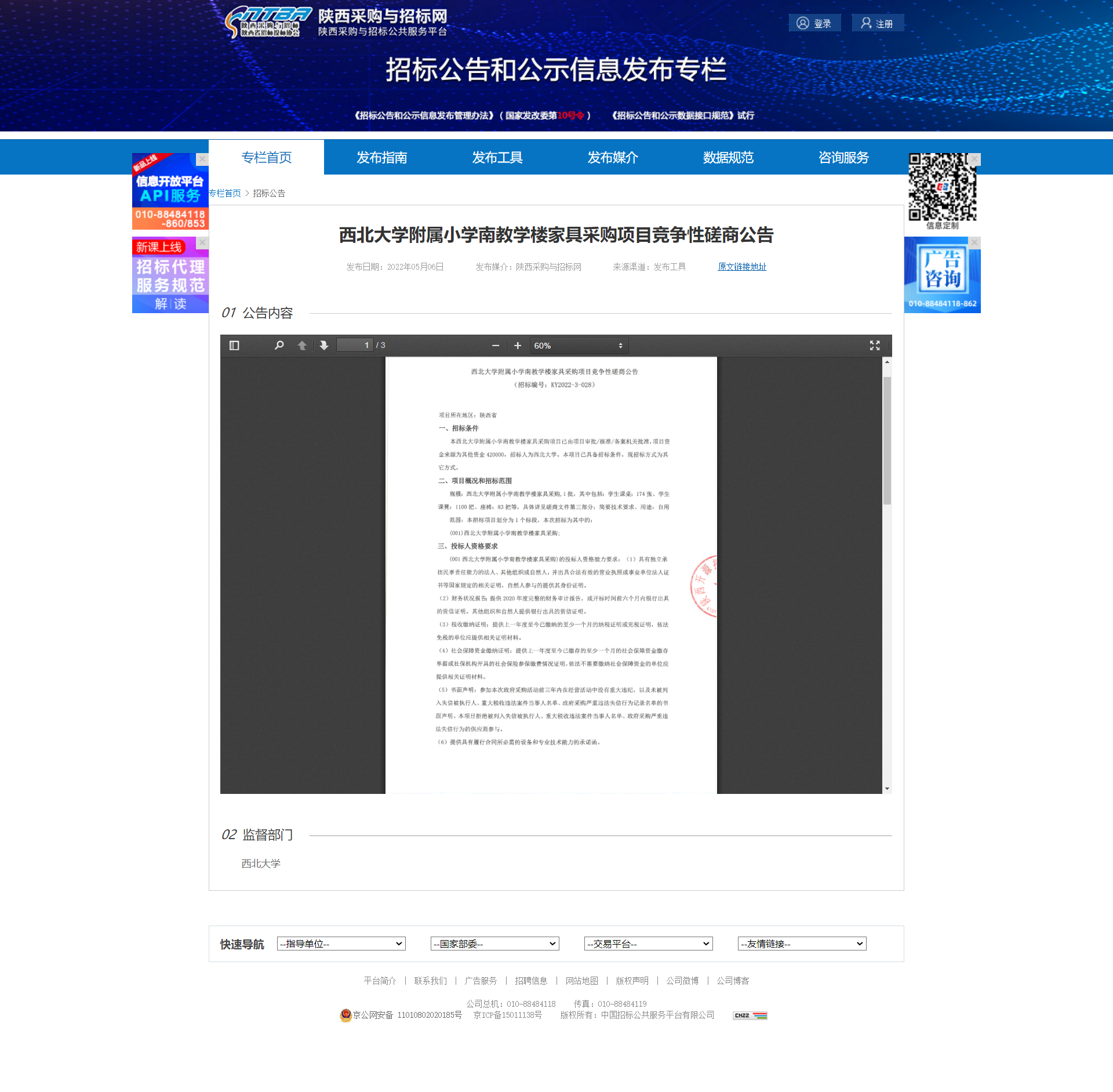 乐鱼网页版页面登录附属小学南教学楼家具采购项目竞争性磋商公告 作者: 编辑:薛利娟 时间:2022-05-06 原公告链接:http://bulletin.sntba.com/biddingBulletin/2022-05-06/416906.html