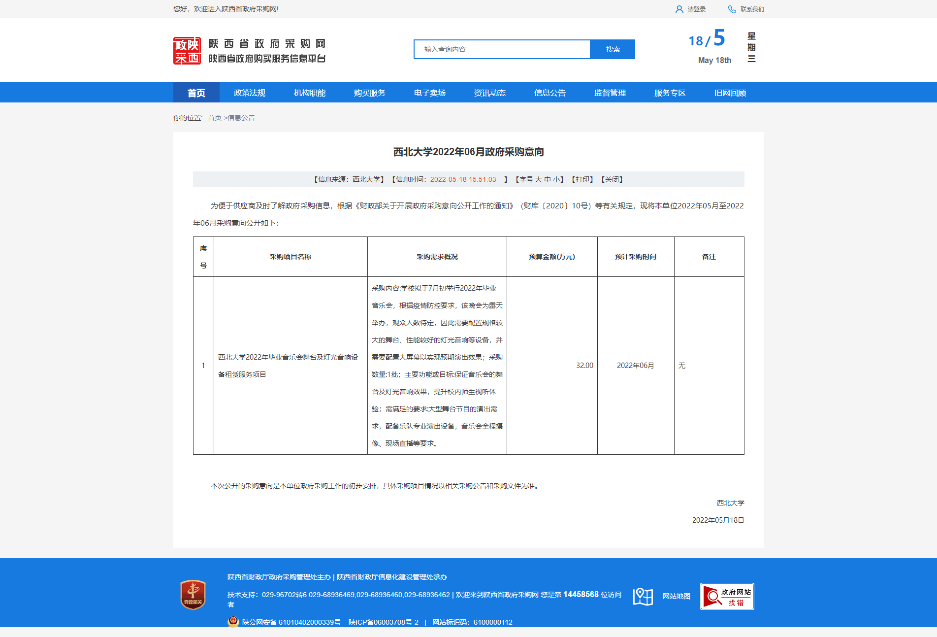 乐鱼网页版页面登录2022年06月政府采购意向