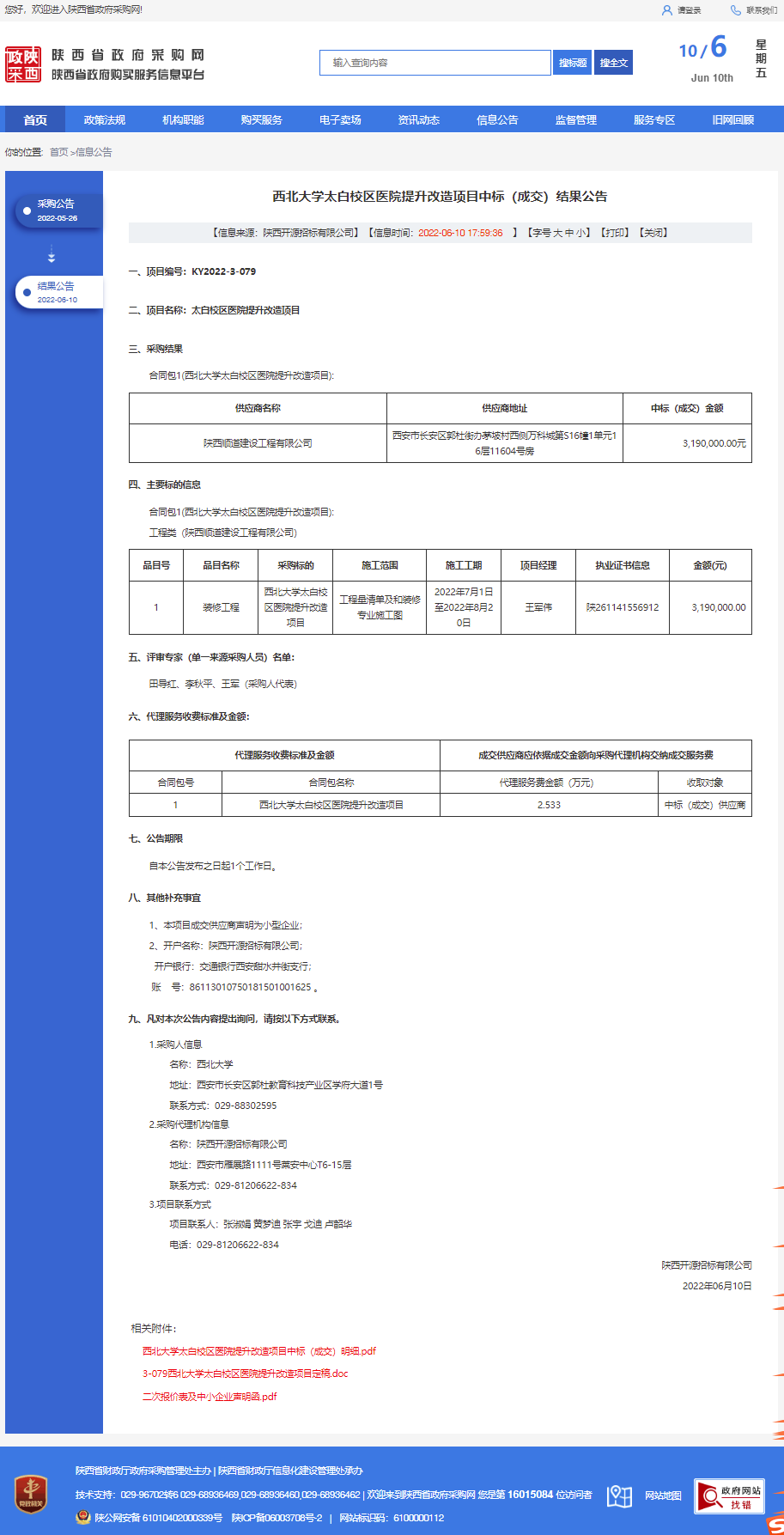 乐鱼网页版页面登录太白校区医院提升改造项目中标(成交)结果公告