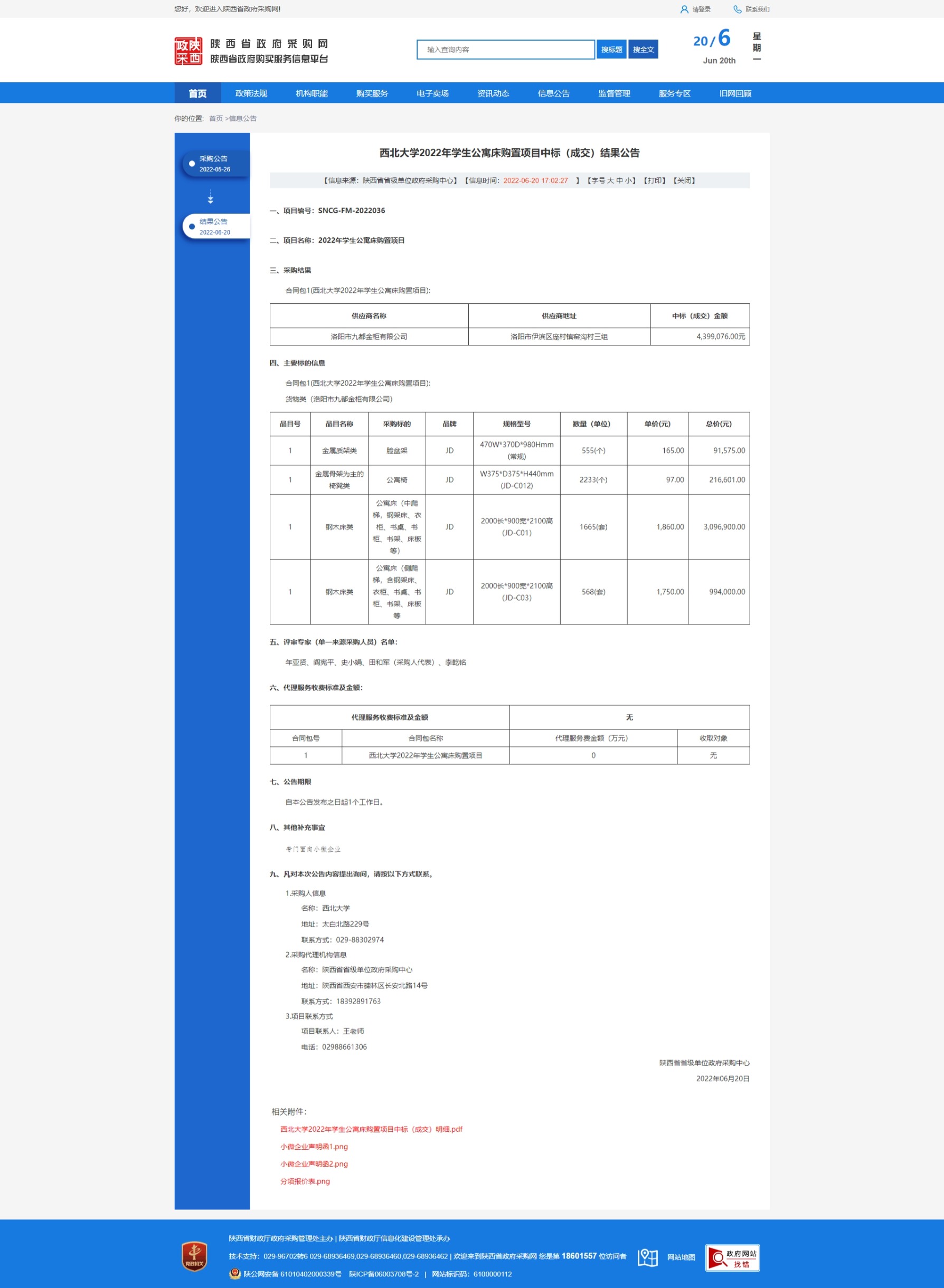 乐鱼网页版页面登录2022年学生公寓床购置项目中标(成交)结果公告 作者: 编辑:薛利娟 时间:2022-06-20 原公告链接:http://www.ccgp-shaanxi.gov.cn/freecms/site/shaanxi/ggxx/info/2022/8a69c8f3812f549f01817fdf5cbb0b94.html?noticeType=001021¬iceId=04d8eb59-f078-11ec-9a8e-08c0eb20c666