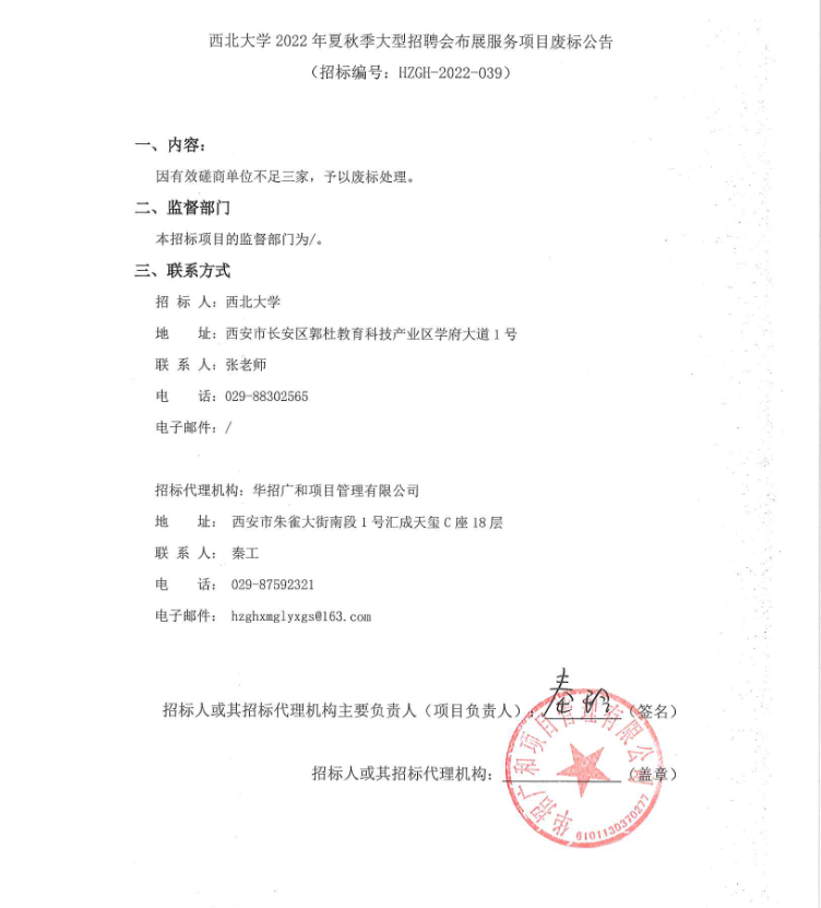 关于乐鱼网页版页面登录2022年夏秋季大型招聘会布展服务项目废标公告