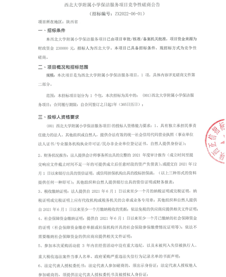 乐鱼网页版页面登录附属小学保洁服务项目竞争性磋商公告