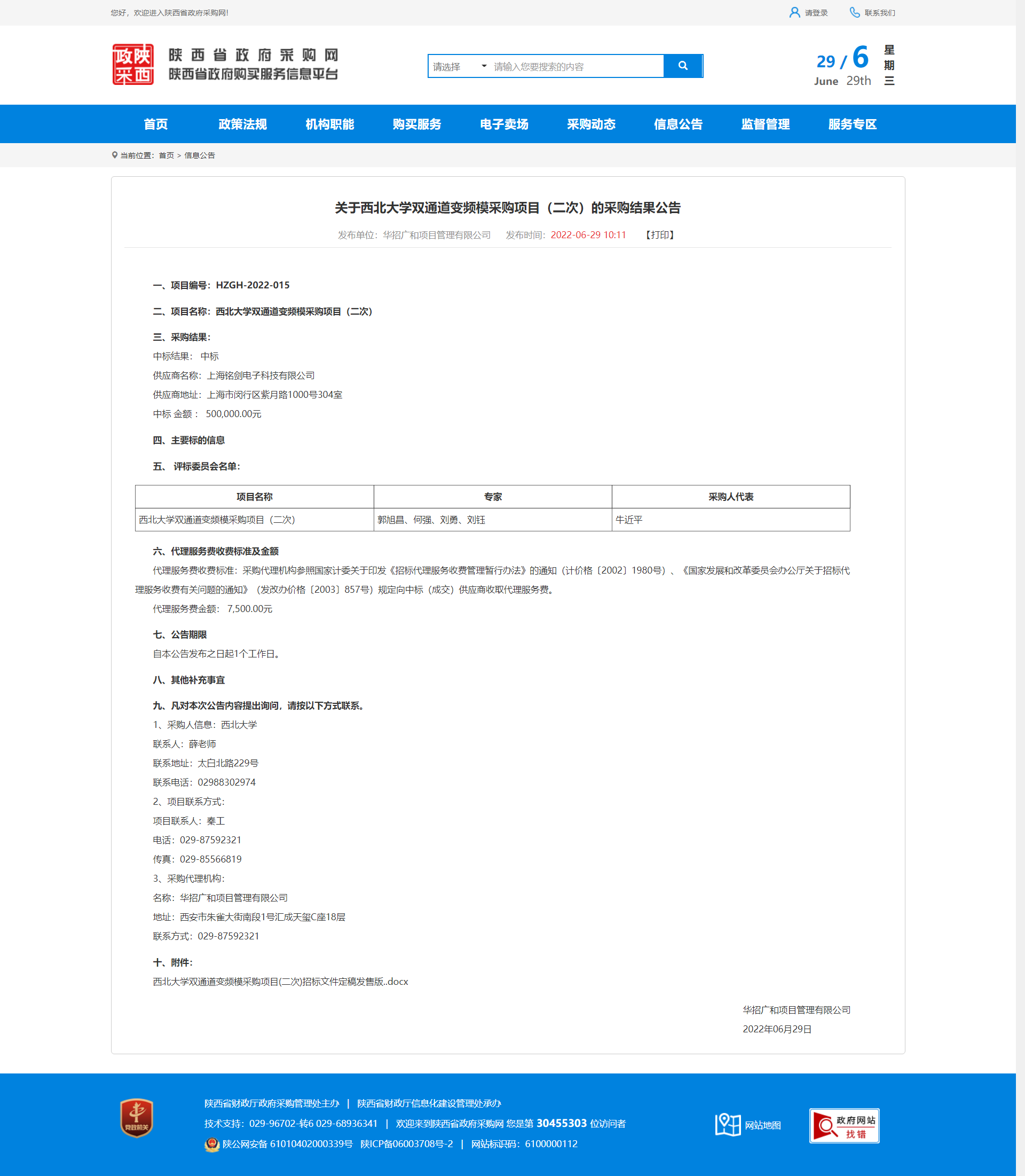 关于乐鱼网页版页面登录双通道变频模采购项目(二次)的采购结果公告 作者: 编辑:采购与招标办公室 时间:2022-06-29 原公告链接:http://113.200.80.230/notice/noticeDetail.do?noticeguid=8a85be3480b2a89e0181ad2d18a45a12