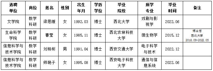 经用人单位推荐,人力资源部审查,学校教学督导及院系相关专家考核,乐鱼网页版页面登录拟确定下列人员来校工作。本着公平、公正、公开的原则,现将本次拟选聘人员基本情况公示如下: