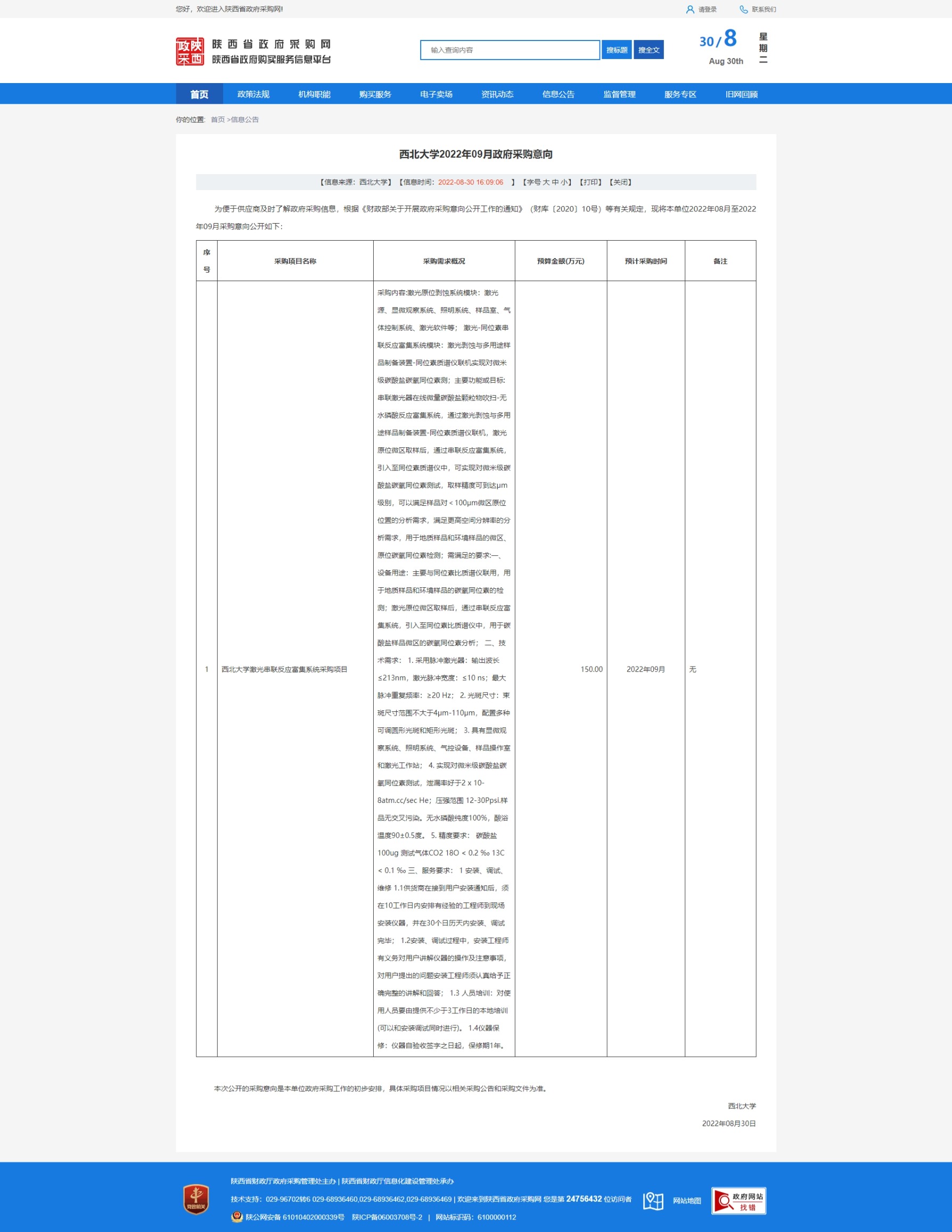乐鱼网页版页面登录2022年09月政府采购意向 作者: 编辑:采购与招标办公室 时间:2022-08-30 原公告链接:http://www.ccgp-shaanxi.gov.cn/freecms/site/shaanxi/ggxx/info/2022/8a69c4ad82edbe080182edca66e4049d.html?noticeType=59¬iceId=7cb68341-283b-11ed-9a8e-08c0eb20c666