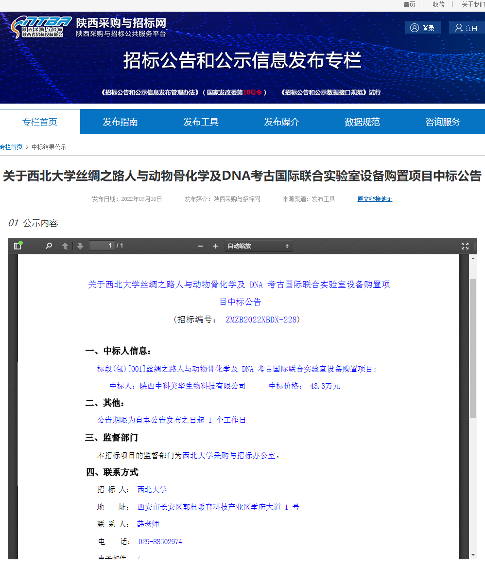 关于乐鱼网页版页面登录丝绸之路人与动物骨化学及DNA考古国际联合实验室设备购置项目中标公告 作者: 编辑:采购与招标办公室 时间:2022-09-06 原公告链接:http://bulletin.sntba.com/resultBulletin/2022-09-06/470905.html