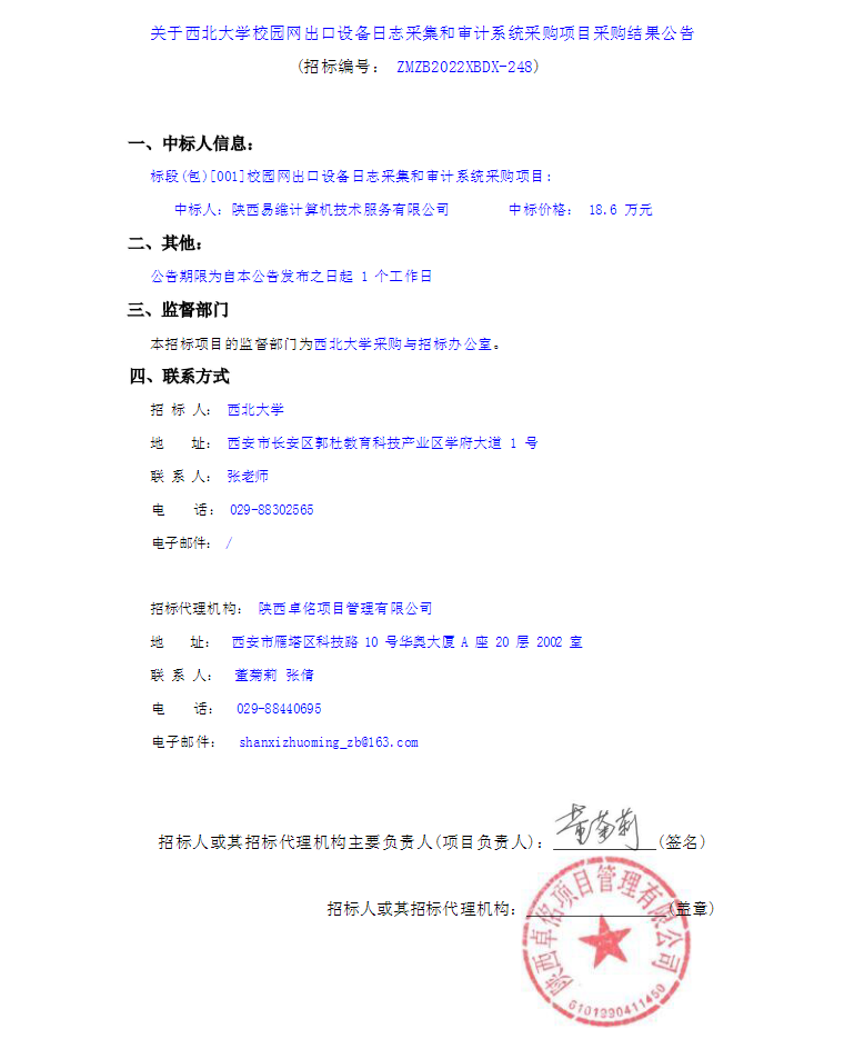 关于乐鱼网页版页面登录校园网出口设备日志采集和审计系统采购项目采购结果公告