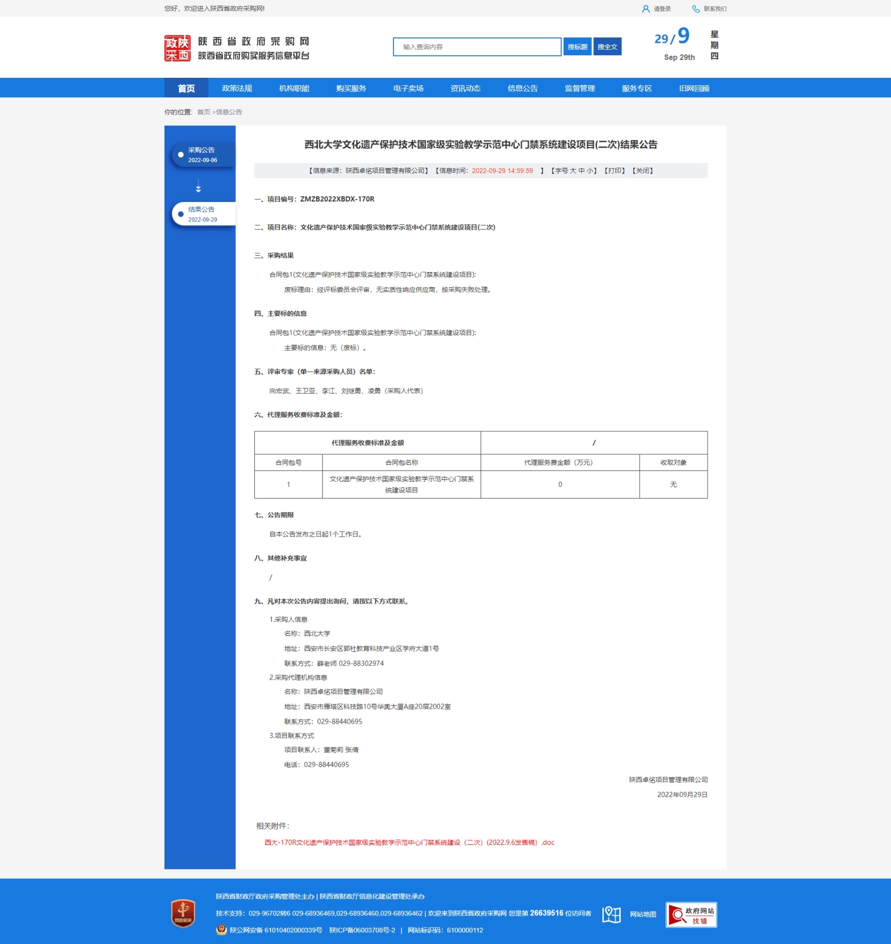 乐鱼网页版页面登录文化遗产保护技术国家级实验教学示范中心门禁系统建设项目(二次)结果公告 作者: 编辑:采购与招标办公室 时间:2022-09-29 原公告链接:http://www.ccgp-shaanxi.gov.cn/freecms/site/shaanxi/ggxx/info/2022/8a69c63182a3253801838804b178380f.html?noticeType=001006¬iceId=dee0a350-3fc4-11ed-9a8e-08c0eb20c666