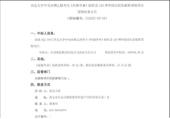 乐鱼网页版页面登录中乌丝绸之路考古《丝路华章》邮折及120周年校庆纪念邮折采购项目采购结果公告 作者: 编辑:采购与招标办公室 时间:2022-10-09 原公告链接:http://bulletin.sntba.com/resultBulletin/2022-10-08/482720.html