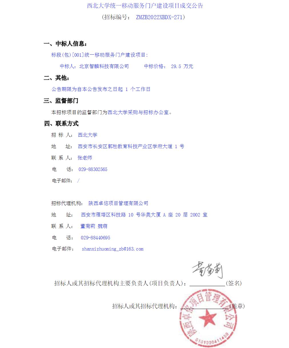 乐鱼网页版页面登录统一移动服务门户建设项目成交公告