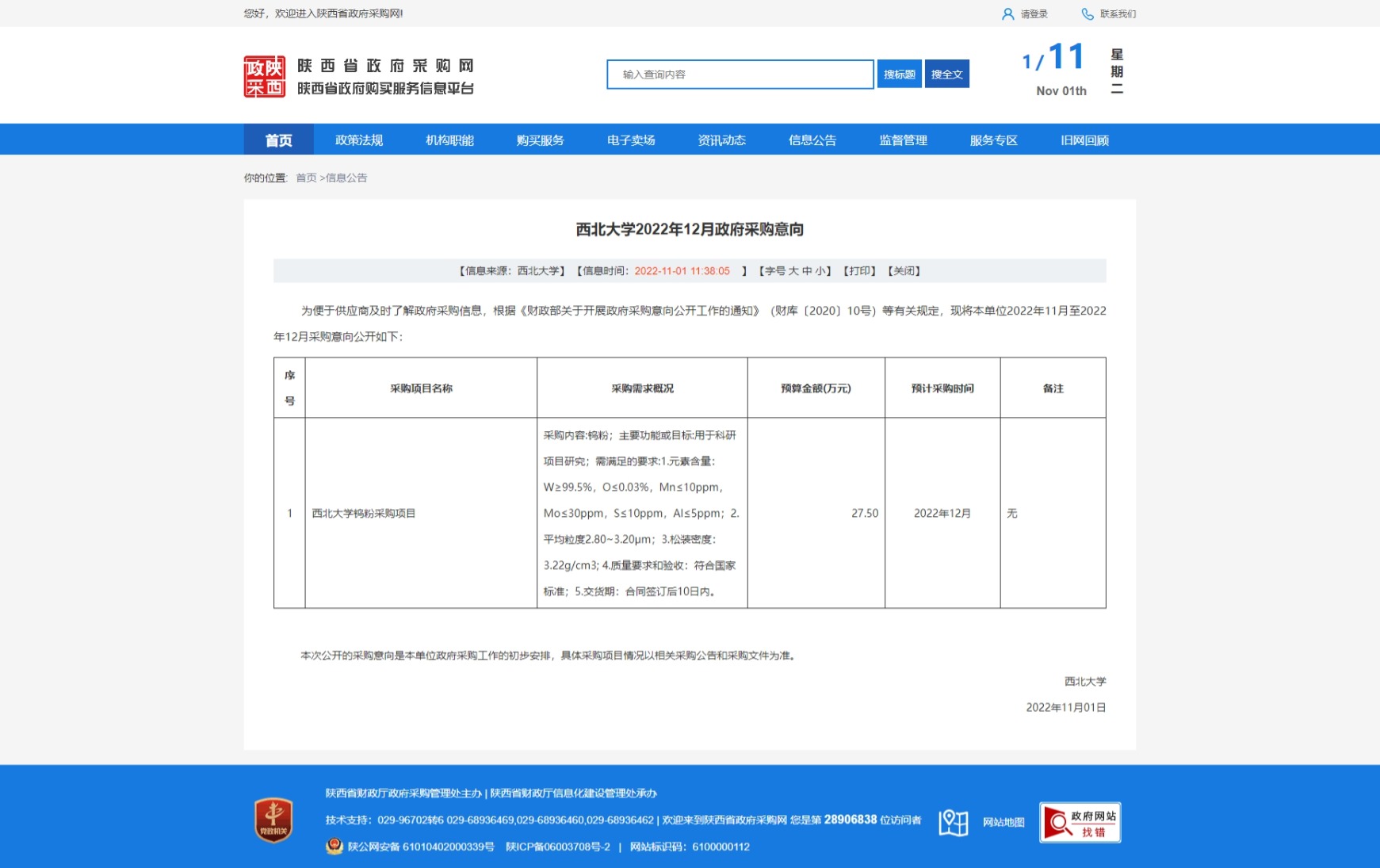 乐鱼网页版页面登录2022年12月政府采购意向 作者: 编辑:采购与招标办公室 时间:2022-11-01 原公告链接:http://www.ccgp-shaanxi.gov.cn/freecms/site/shaanxi/ggxx/info/2022/8a69c851842917c901843142ef485753.html?noticeType=59¬iceId=3378fddc-5997-11ed-9a8e-08c0eb20c666