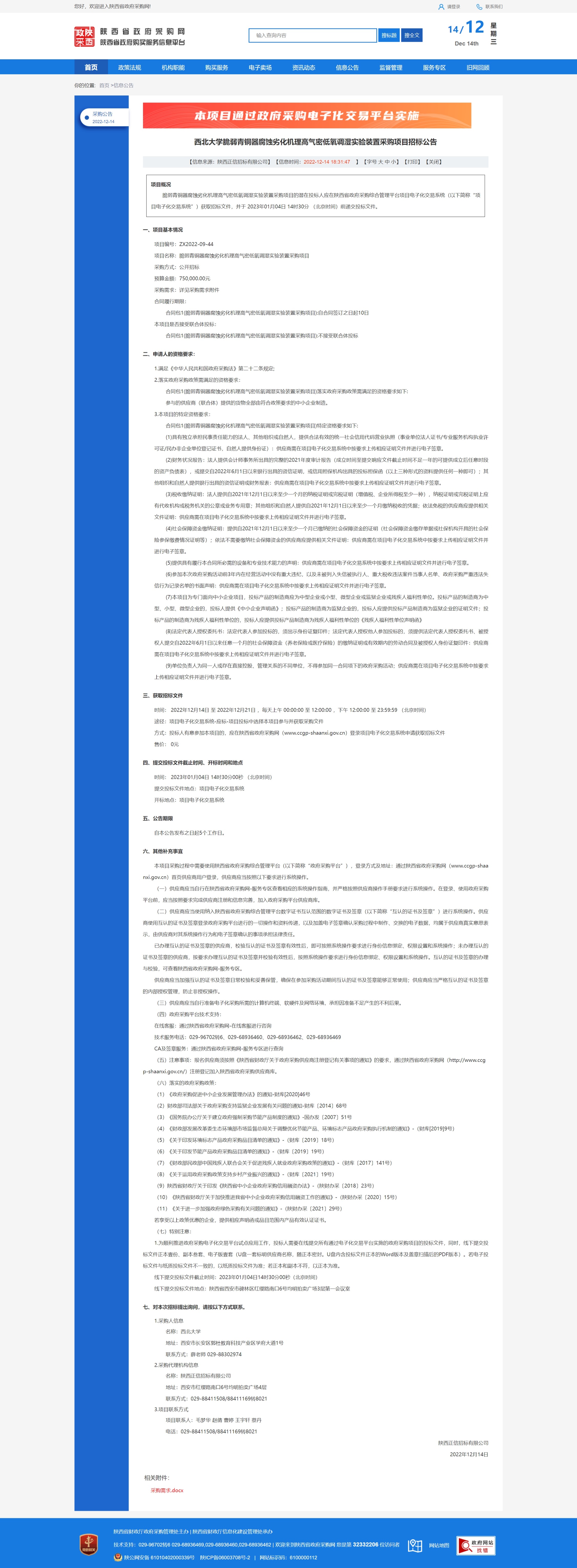乐鱼网页版页面登录脆弱青铜器腐蚀劣化机理高气密低氧调湿实验装置采购项目招标公告 作者: 编辑:采购与招标办公室 时间:2022-12-14 原公告链接:http://www.ccgp-shaanxi.gov.cn/freecms/site/shaanxi/ggxx/info/2022/8a69c04c84ea4f7e0185100661482b70.html?noticeType=001011¬iceId=37595ef0-7b9b-11ed-9a8e-08c0eb20c666