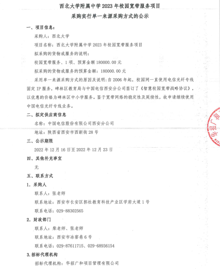 乐鱼网页版页面登录附属中学2023年校园宽带服务项目采购实行单一来源采购方式的公示