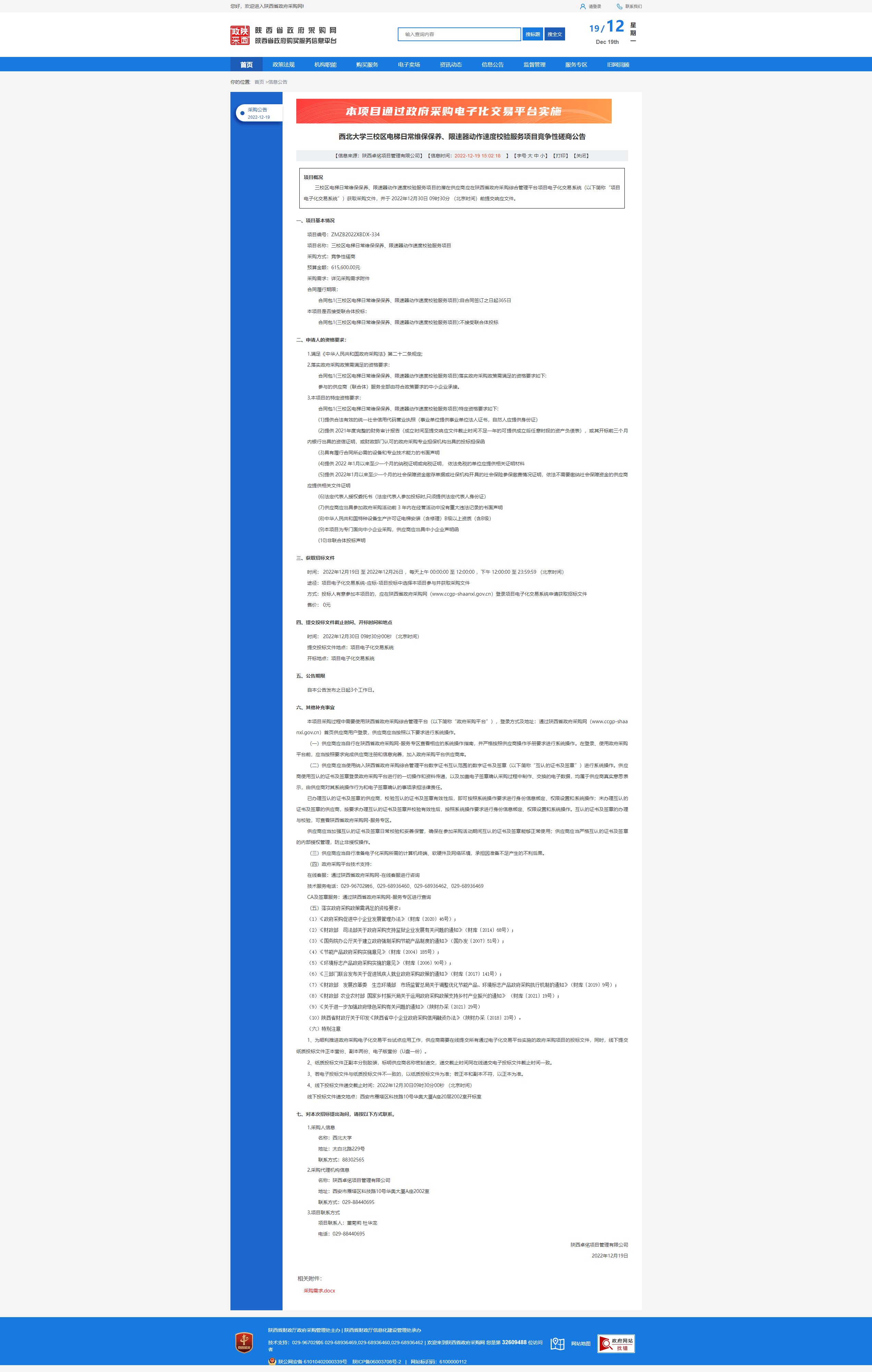 乐鱼网页版页面登录三校区电梯日常维保保养、限速器动作速度校验服务项目竞争性磋商公告