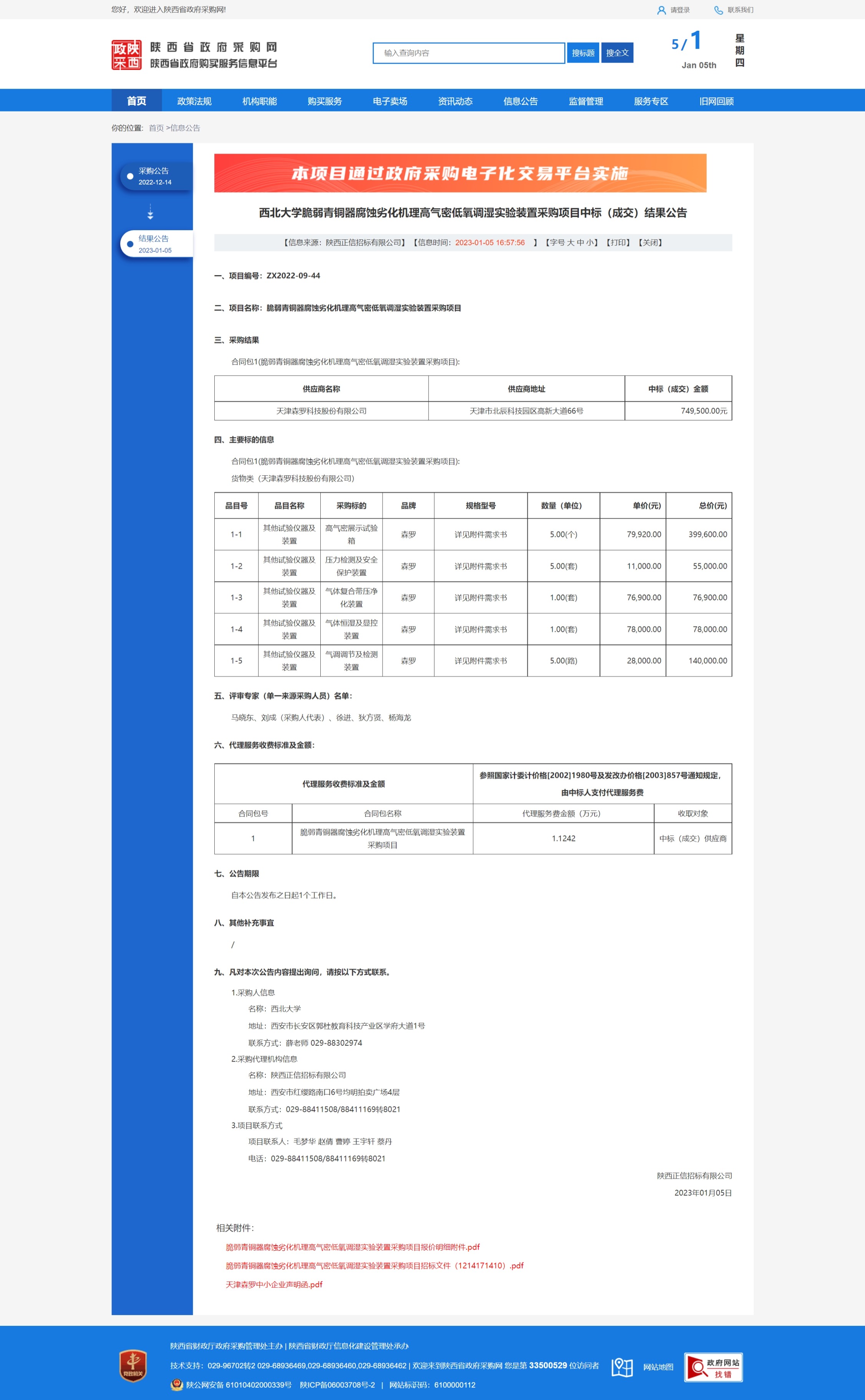 乐鱼网页版页面登录脆弱青铜器腐蚀劣化机理高气密低氧调湿实验装置采购项目中标(成交)结果公告 作者: 编辑:采购与招标办公室 时间:2023-01-05 原公告链接:http://www.ccgp-shaanxi.gov.cn/freecms/site/shaanxi/ggxx/info/2023/8a69c054852dbea601858077ea453bb3.html?noticeType=001021¬iceId=cbc8e5cb-8cd7-11ed-9a8e-08c0eb20c666