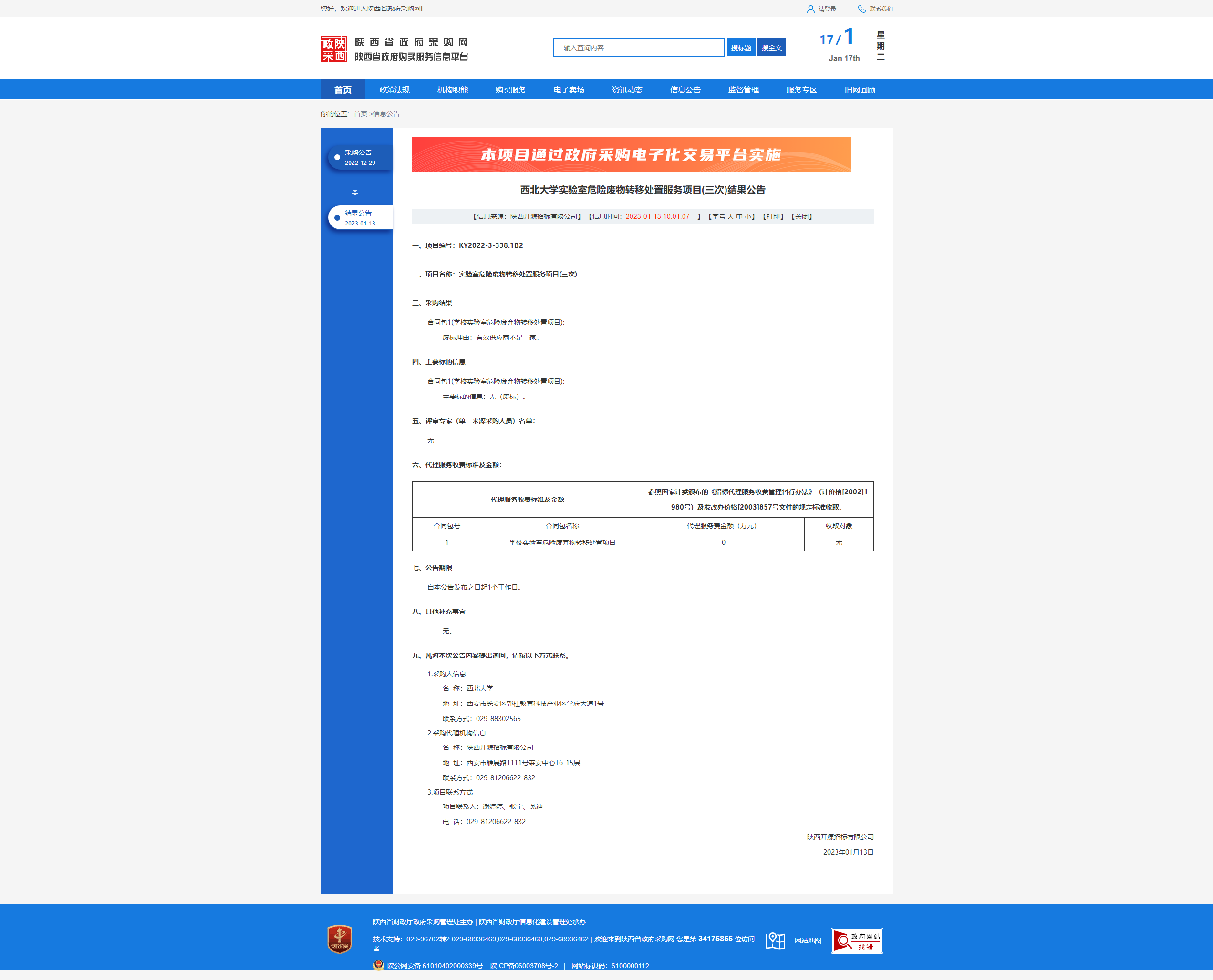 乐鱼网页版页面登录实验室危险废物转移处置服务项目(三次)结果公告