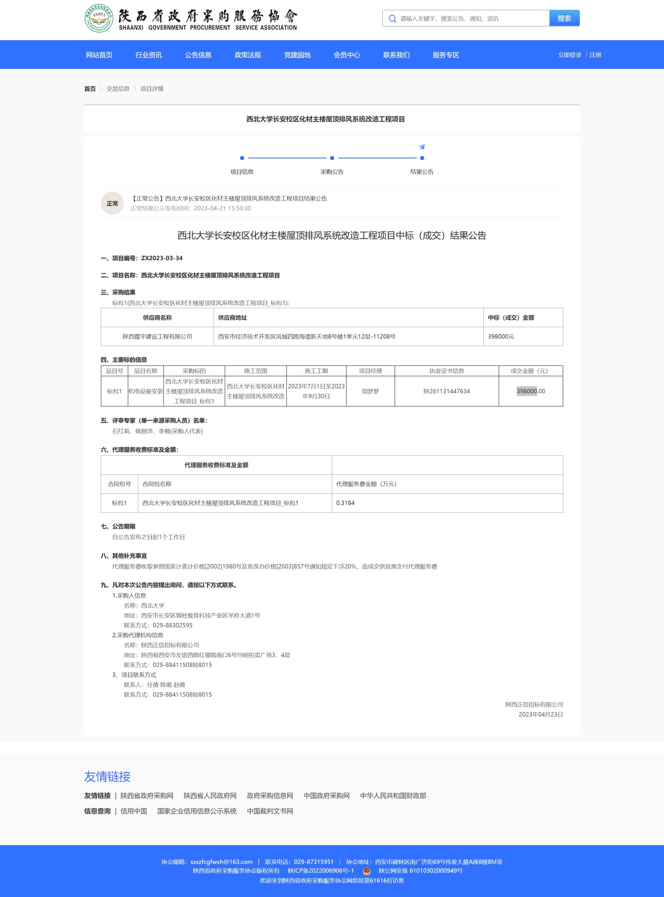 乐鱼网页版页面登录长安校区化材主楼屋顶排风系统改造工程项目中标(成交)结果公告