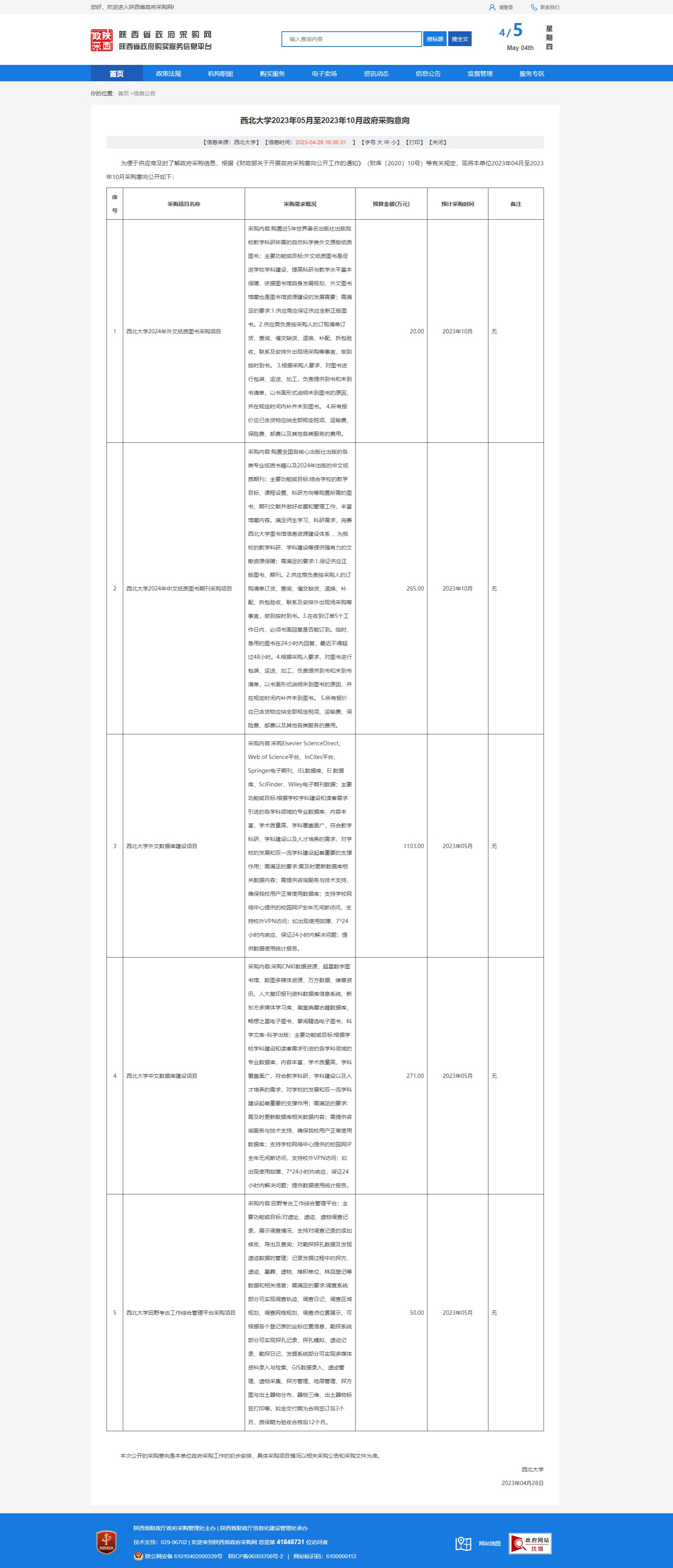 乐鱼网页版页面登录2023年05月至2023年10月政府采购意向