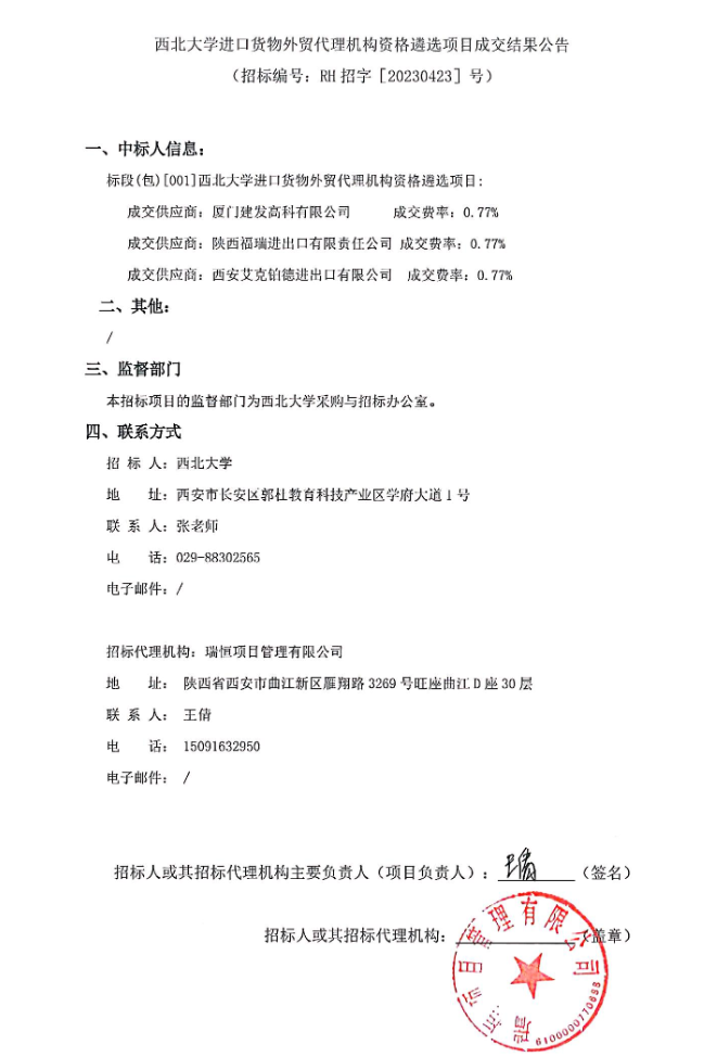 乐鱼网页版页面登录进口货物外贸代理机构资格遴选项目成交结果公告