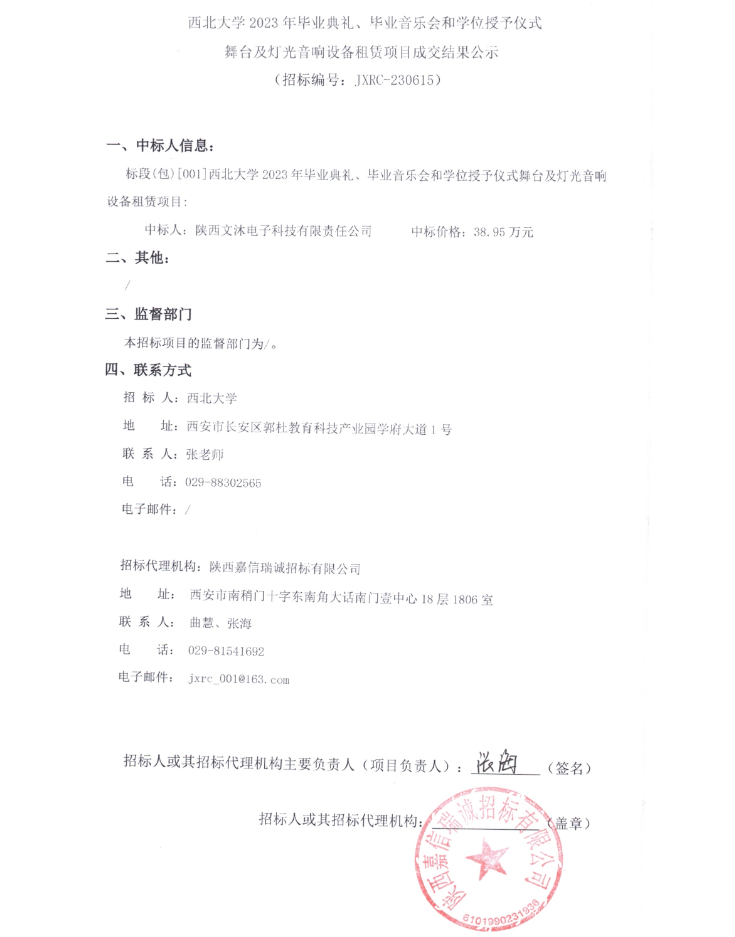 乐鱼网页版页面登录2023年毕业典礼、毕业音乐会和学位授予仪式舞台及灯光音响设备租赁项目成交结果公示