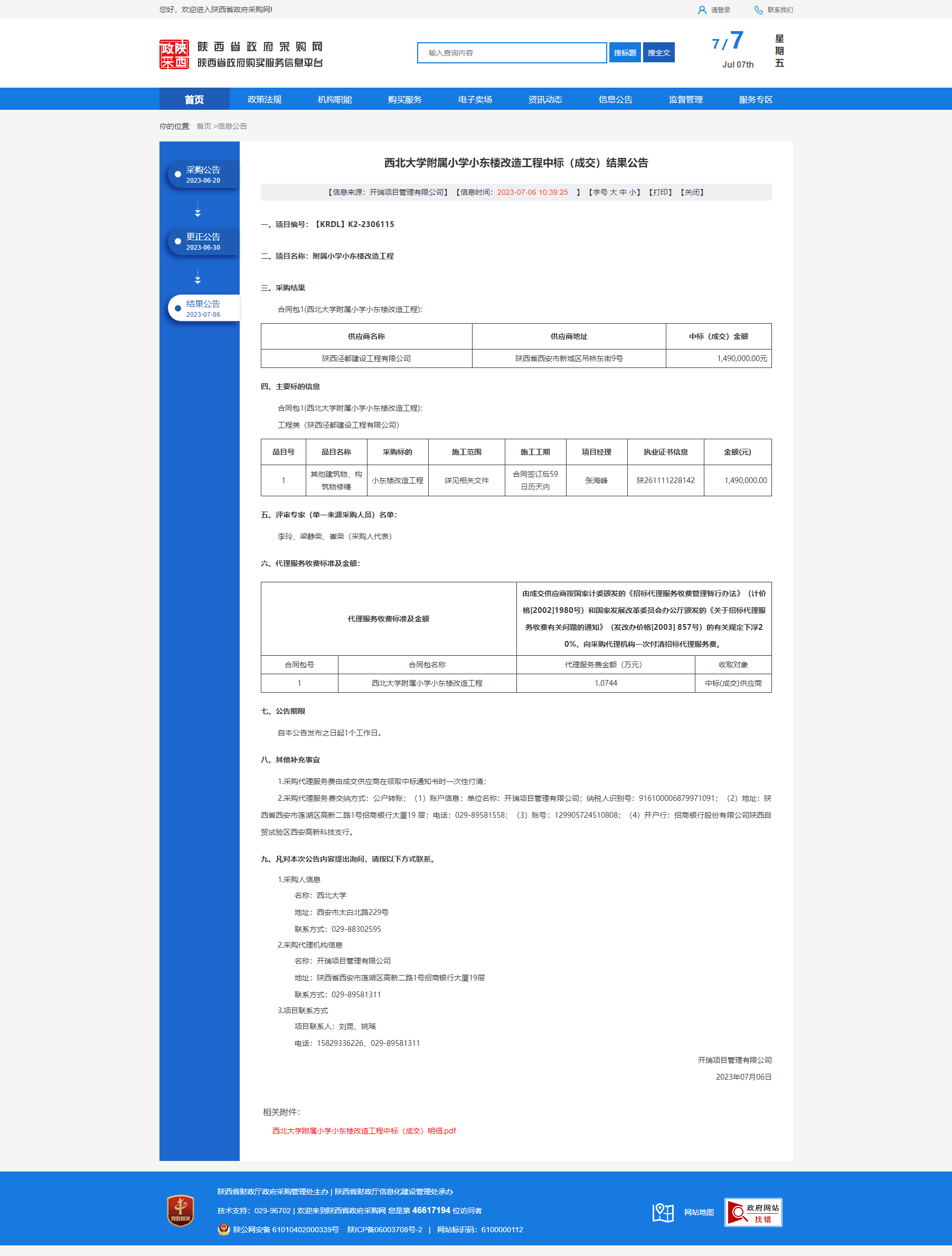 乐鱼网页版页面登录附属小学小东楼改造工程中标(成交)结果公告
