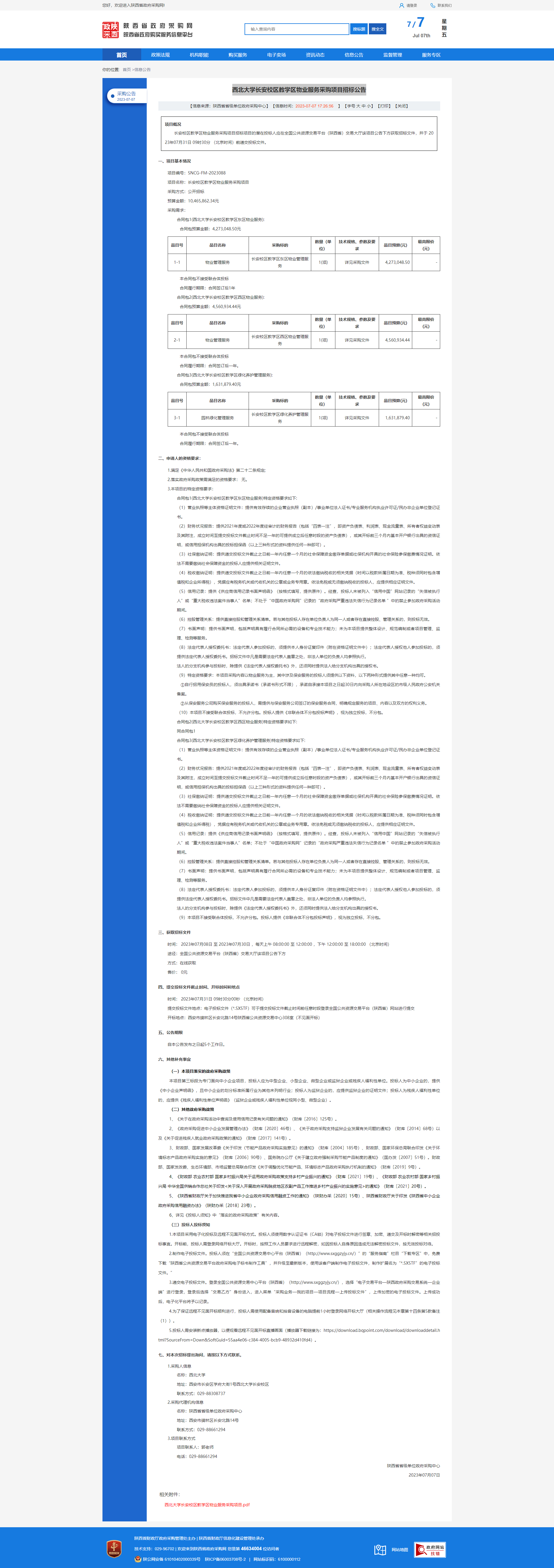 乐鱼网页版页面登录长安校区教学区物业服务采购项目招标公告