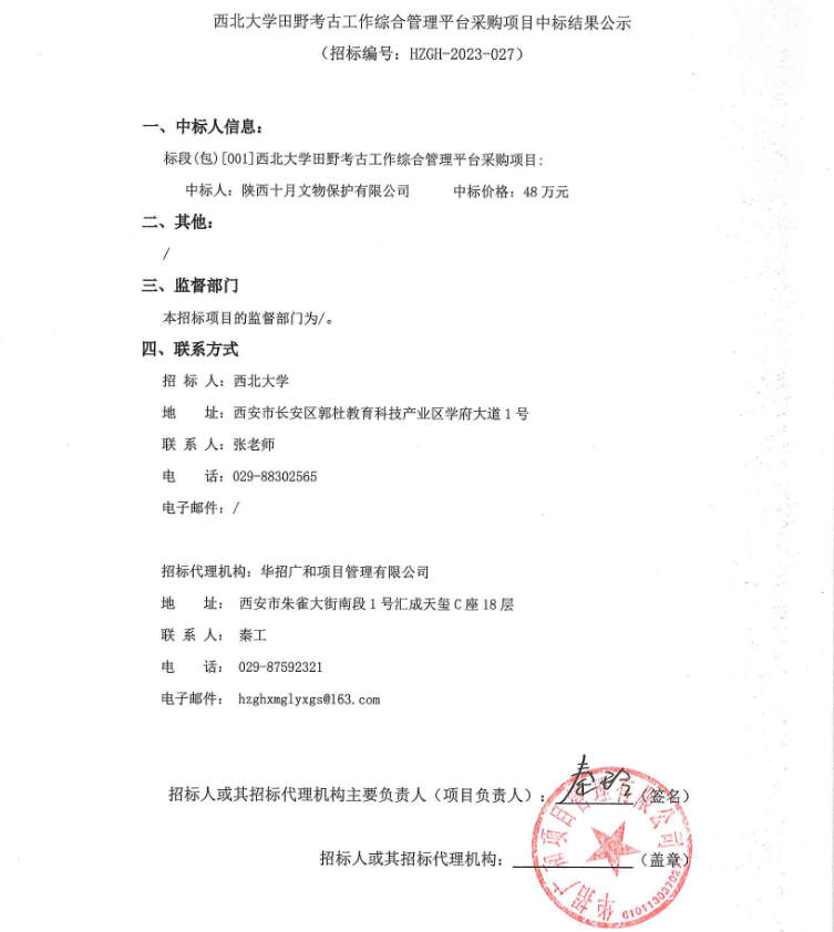 乐鱼网页版页面登录田野考古工作综合管理平台采购项目中标结果公示