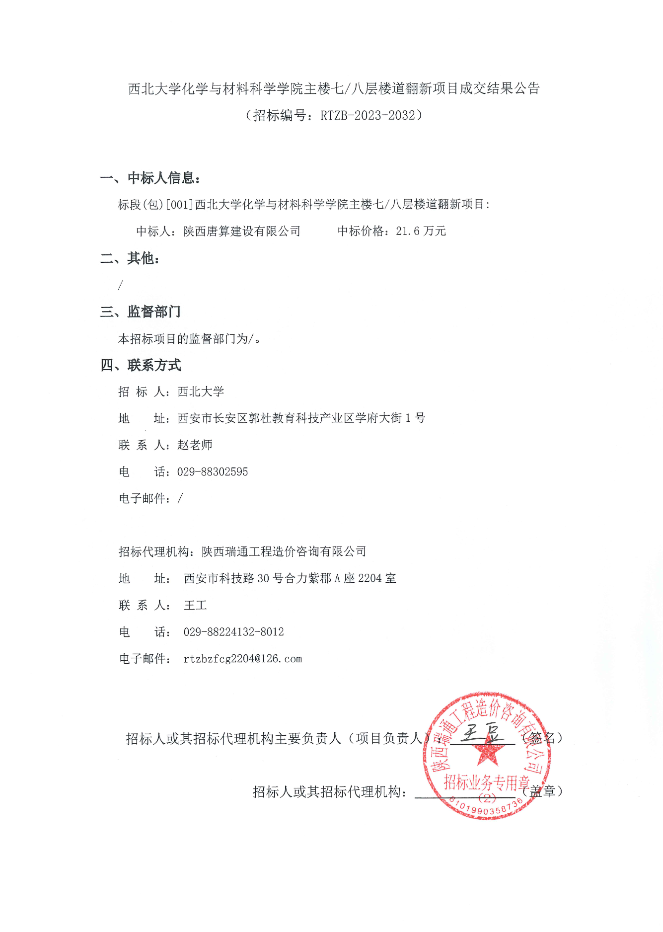 乐鱼网页版页面登录化学与材料科学学院主楼七/八层楼道翻新项目成交结果公告