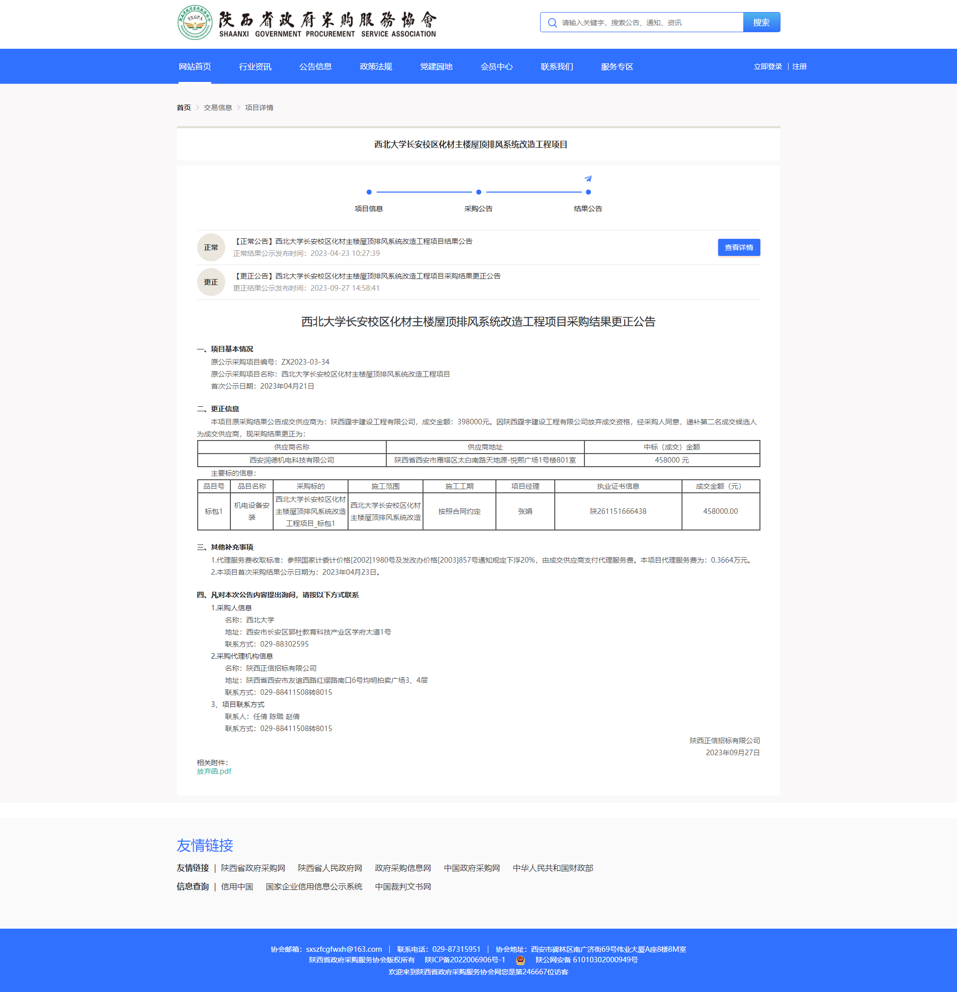 乐鱼网页版页面登录长安校区化材主楼屋顶排风系统改造工程项目采购结果更正公告