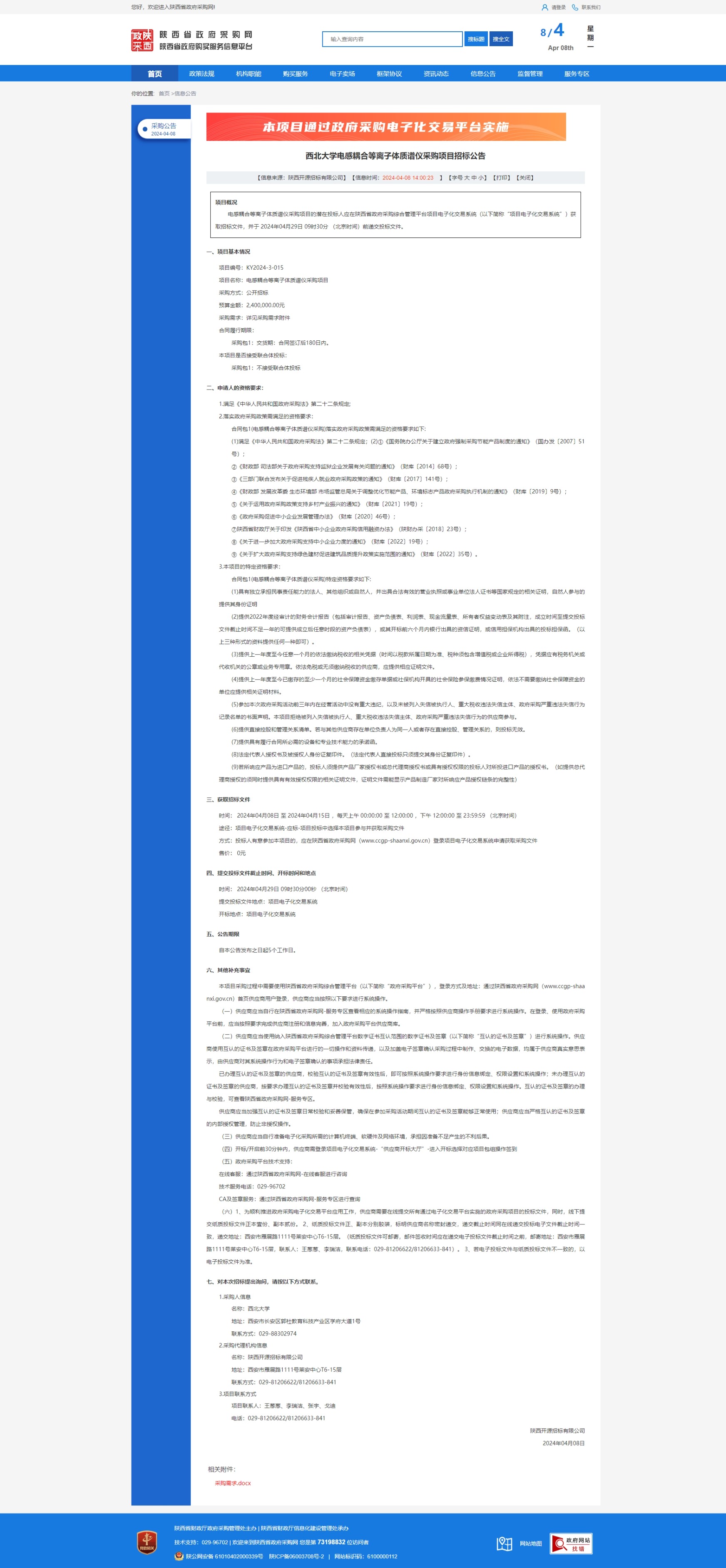 乐鱼网页版页面登录电感耦合等离子体质谱仪采购项目招标公告 作者: 编辑:采购与招标办公室 时间:2024-04-08 原公告链接:https://www.ccgp-shaanxi.gov.cn/freecms/site/shaanxi/ggxx/info/2024/8a69c2f28e4640e0018ebbac71f22fb5.html?noticeType=001011¬iceId=e1c4a4e8-f56e-11ee-b8b6-08c0eb20c666