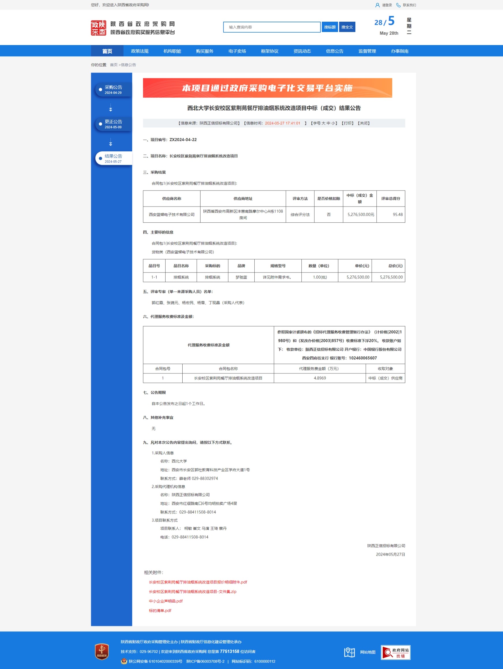乐鱼网页版页面登录长安校区紫荆苑餐厅排油烟系统改造项目中标(成交)结果公告 作者: 编辑:采购与招标办公室 时间:2024-05-28 原公告链接:https://www.ccgp-shaanxi.gov.cn/freecms/site/shaanxi/ggxx/info/2024/8a69c2108f8bd852018fb91b486c4125.html?noticeType=001021¬iceId=d54daf1e-1c10-11ef-b8b6-08c0eb20c666