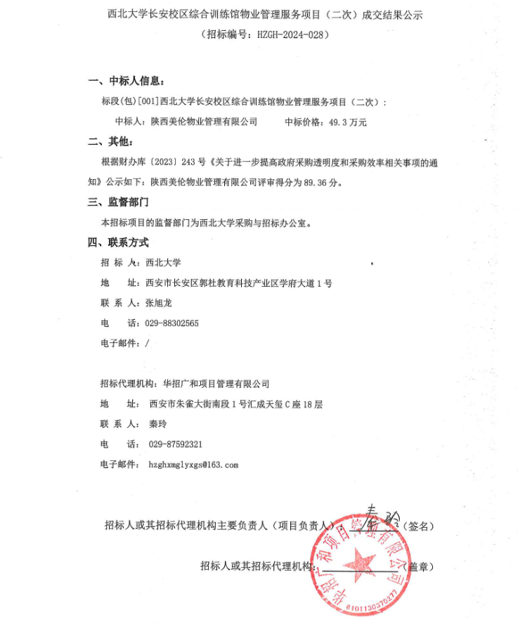 乐鱼网页版页面登录长安校区综合训练馆物业管理服务项目(二次)成交结果公示