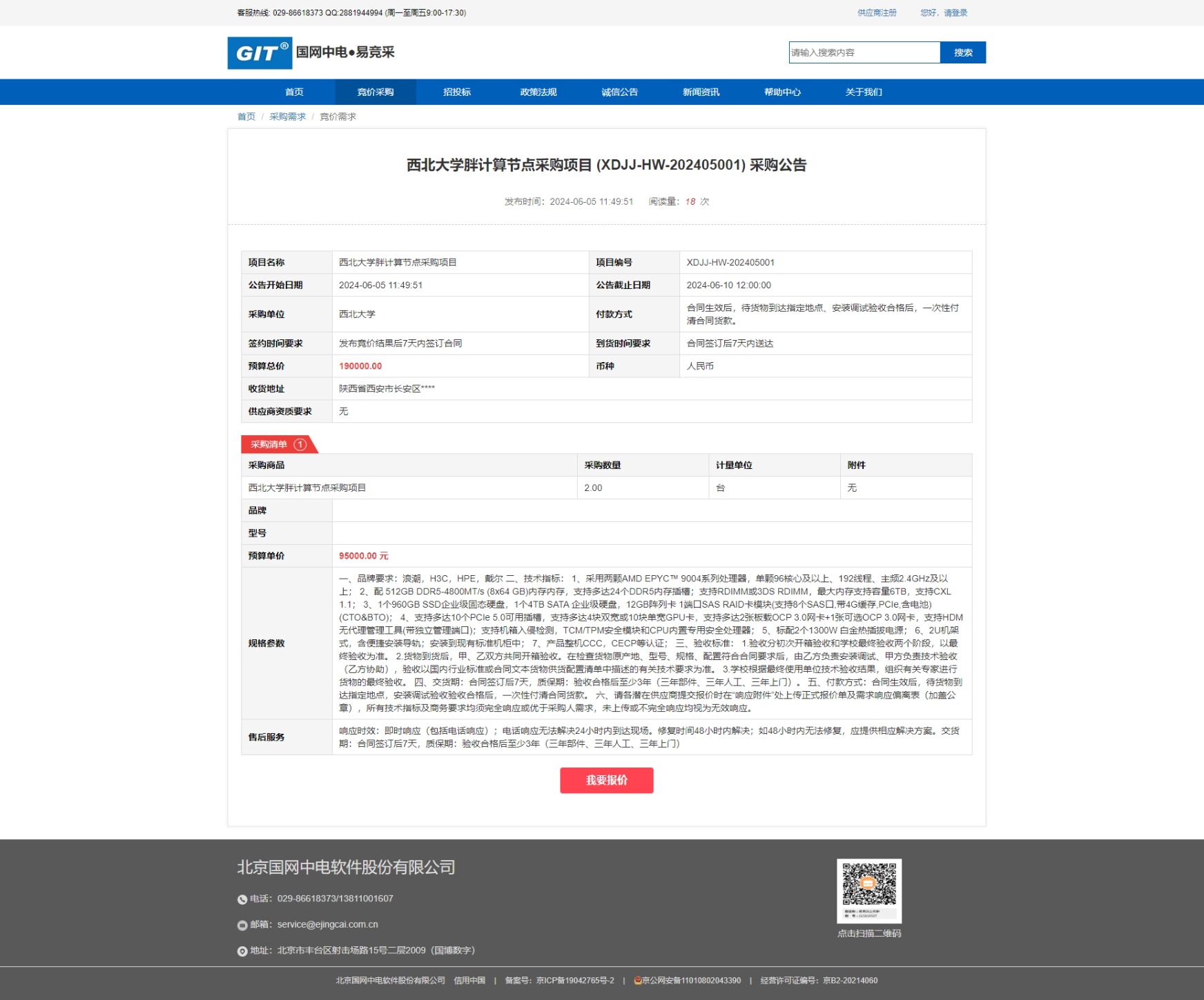 乐鱼网页版页面登录胖计算节点采购项目 (XDJJ-HW-202405001) 采购公告 作者: 编辑:采购与招标办公室 时间:2024-06-05 原公告链接:https://www.ejingcai.com.cn/site/bidding/detail/10763