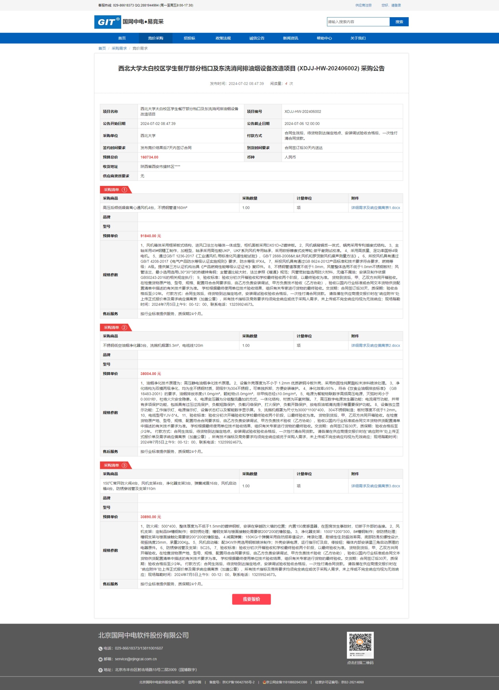 乐鱼网页版页面登录太白校区学生餐厅部分档口及东洗消间排油烟设备改造项目 (XDJJ-HW-202406002) 竞价采购公告 作者: 编辑:采购与招标办公室 时间:2024-07-02 原公告链接:https://www.ejingcai.com.cn/site/bidding/detail/11377
