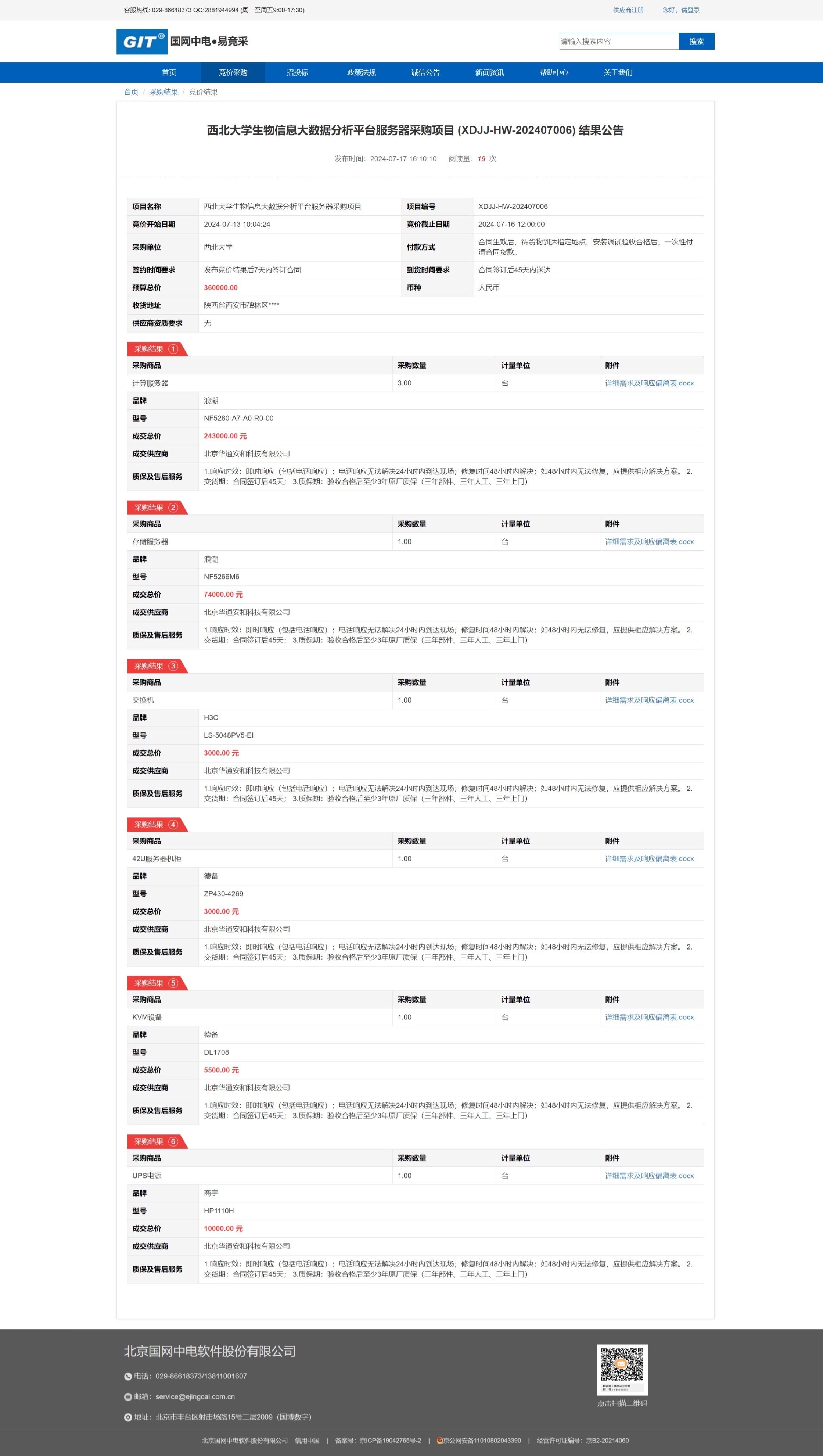 乐鱼网页版页面登录生物信息大数据分析平台服务器采购项目 (XDJJ-HW-202407006) 竞价结果公告 作者: 编辑:采购与招标办公室 时间:2024-07-17 原公告链接:https://www.ejingcai.com.cn/site/bidding/detail/11726