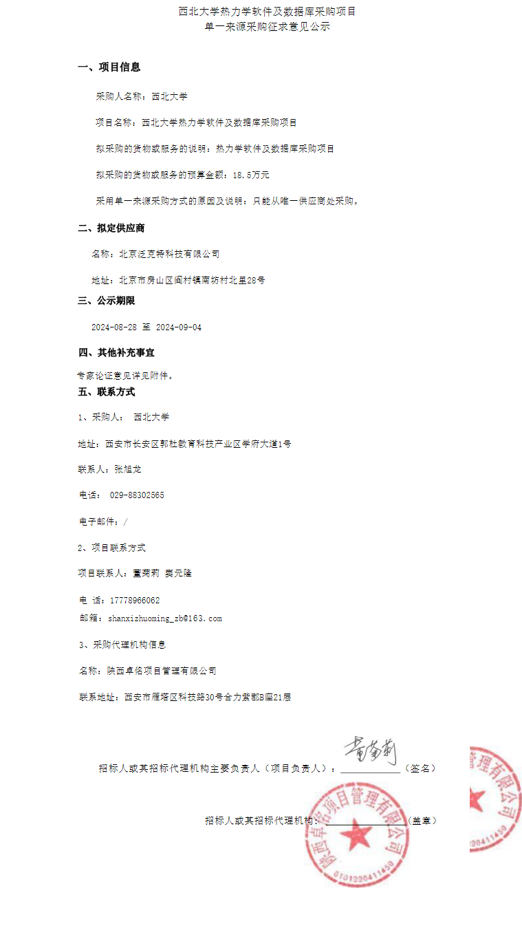乐鱼网页版页面登录热力学软件及数据库采购项目单一来源采购征求意见公示