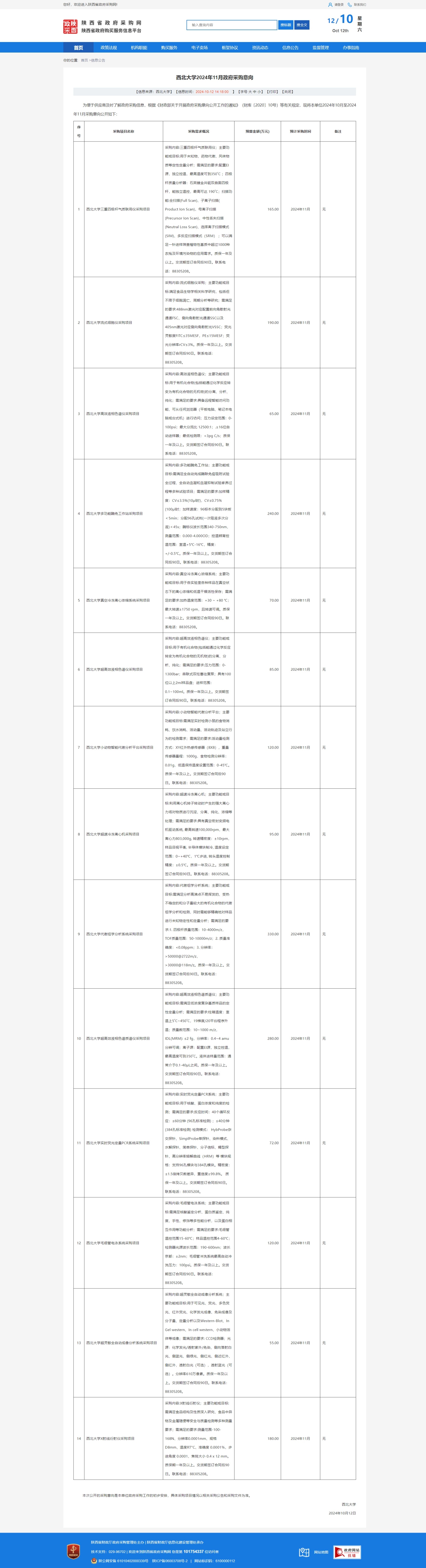 乐鱼网页版页面登录2024年11月政府采购意向(食品科学与工程学院) 作者: 编辑: 时间:2024-10-12 原公告链接:https://www.ccgp-shaanxi.gov.cn/freecms/site/shaanxi/ggxx/info/2024/8a69c95c927dd5a501927e27dae504f0.html?noticeType=59¬iceId=3cbc7a1c-8863-11ef-8063-08c0eb20c666
