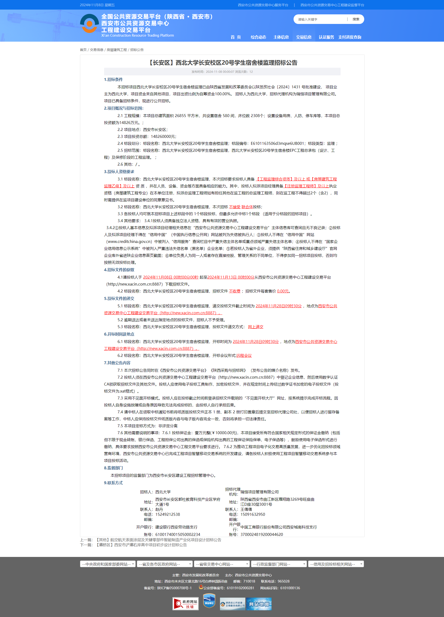 乐鱼网页版页面登录长安校区20号学生宿舍楼监理招标公告