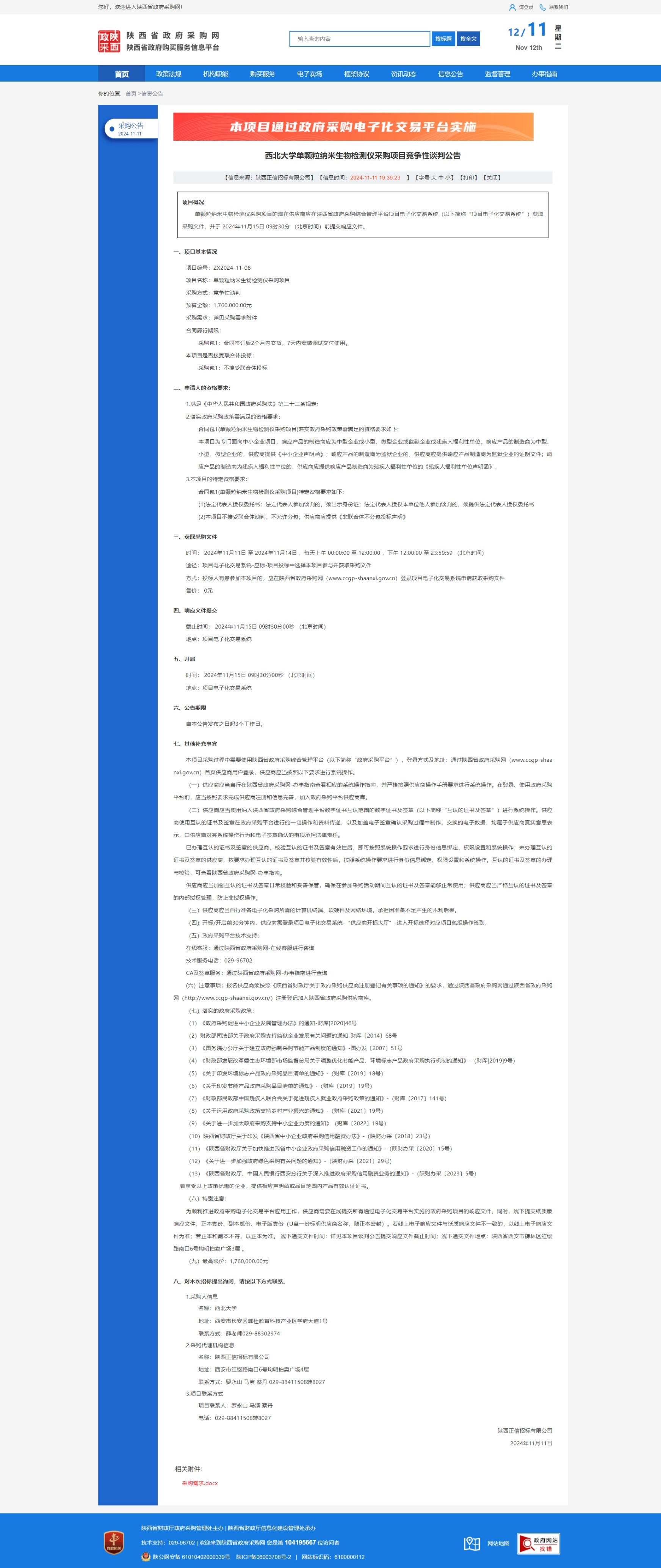 乐鱼网页版页面登录单颗粒纳米生物检测仪采购项目竞争性谈判公告 作者: 编辑:薛利娟 时间:2024-11-12 原公告链接:https://www.ccgp-shaanxi.gov.cn/freecms/site/shaanxi/ggxx/info/2024/8a69c5a59218576d01931ae5a92607ad.html?noticeType=001013¬iceId=29519790-a023-11ef-8063-08c0eb20c666