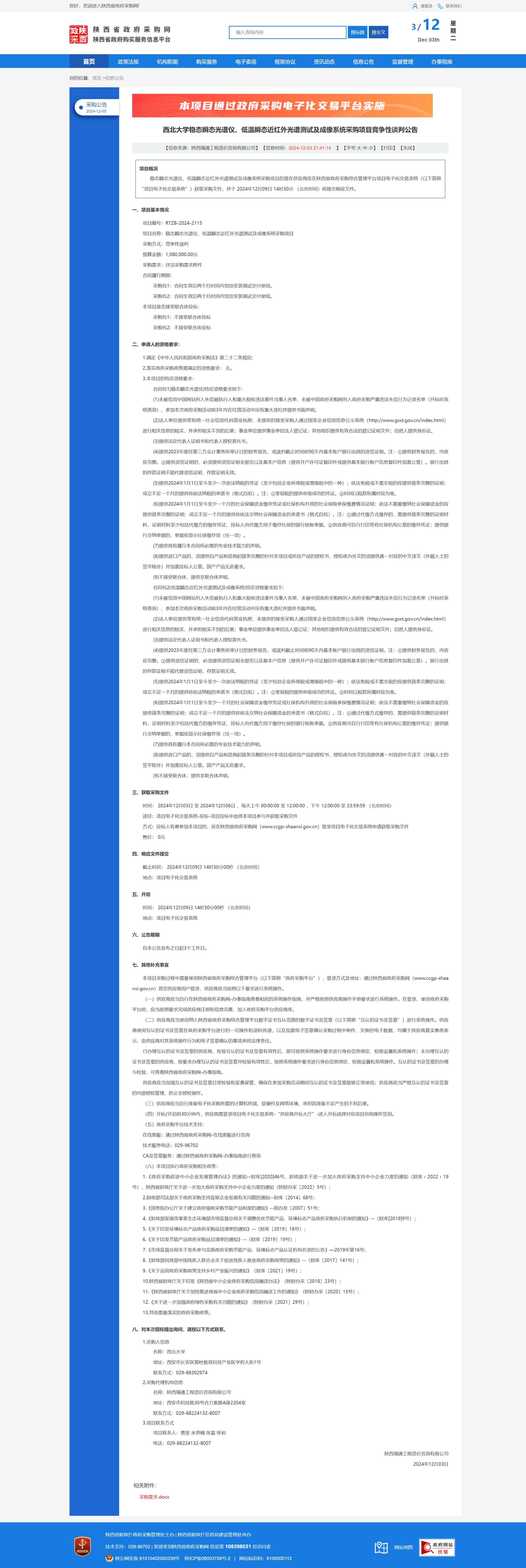 乐鱼网页版页面登录稳态瞬态光谱仪、低温瞬态近红外光谱测试及成像系统采购项目竞争性谈判公告 作者: 编辑:薛利娟 时间:2024-12-03 原公告链接:https://www.ccgp-shaanxi.gov.cn/freecms/site/shaanxi/ggxx/info/2024/8a69c44e9218572b01938cbc4df756c6.html?noticeType=001013¬iceId=de684e67-b17d-11ef-8063-08c0eb20c666