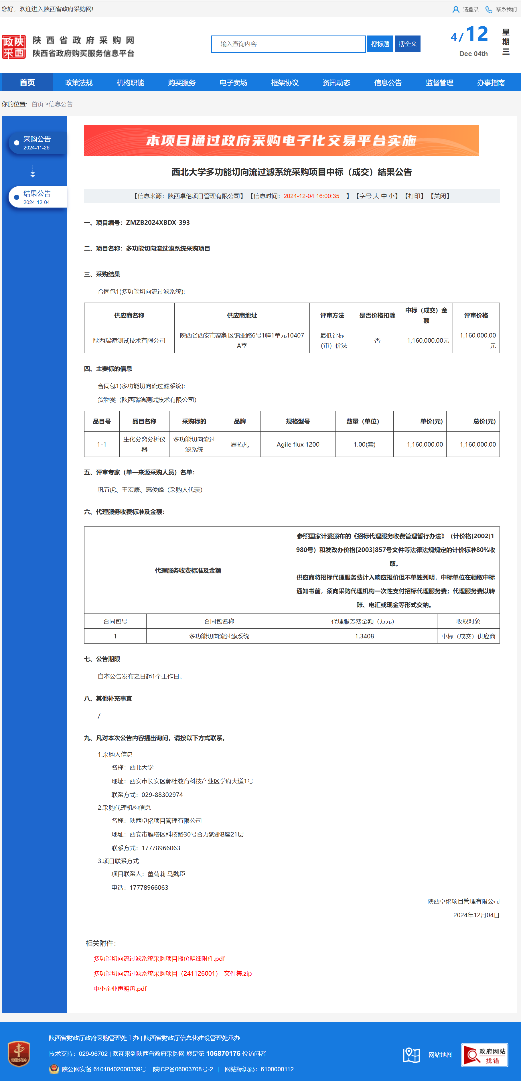 乐鱼网页版页面登录多功能切向流过滤系统采购项目中标(成交)结果公告 作者:采购与招标办公室 编辑: 时间:2024-12-04 原公告链接:https://www.ccgp-shaanxi.gov.cn/freecms/site/shaanxi/ggxx/info/2024/8a69c251921857370193906a95e723a6.html?noticeType=001023¬iceId=72dcd5e1-b217-11ef-8063-08c0eb20c666