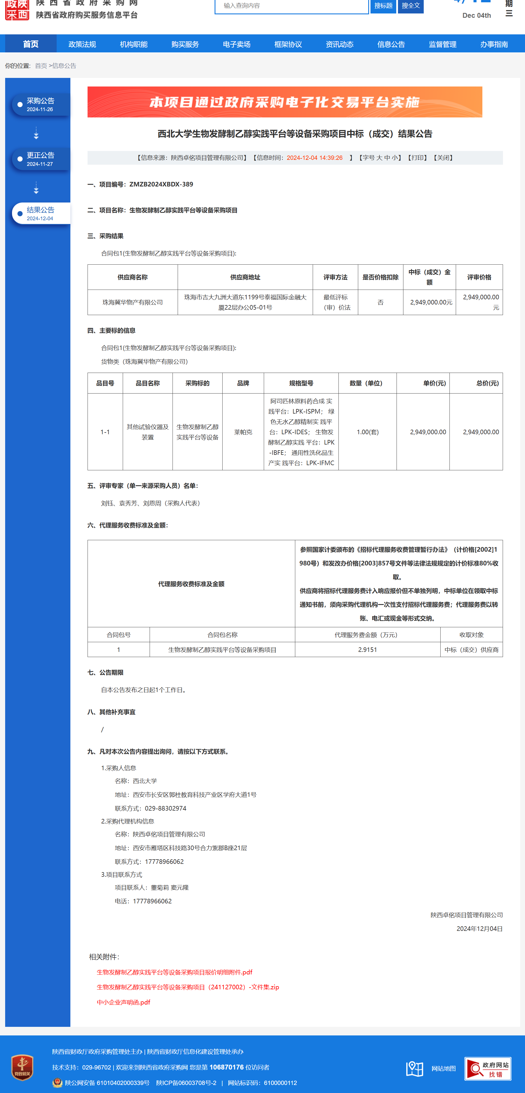 乐鱼网页版页面登录生物发酵制乙醇实践平台等设备采购项目中标(成交)结果公告 作者:采购与招标办公室 编辑: 时间:2024-12-04 原公告链接:https://www.ccgp-shaanxi.gov.cn/freecms/site/shaanxi/ggxx/info/2024/8a69c5a59218576d0193905cb113521a.html?noticeType=001023¬iceId=1cad3dce-b20c-11ef-8063-08c0eb20c666