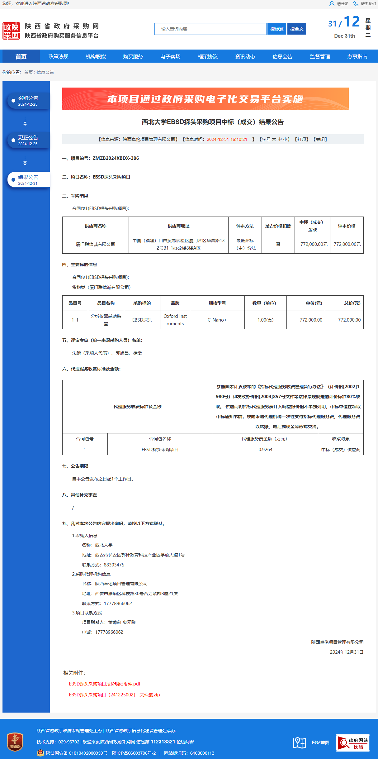 乐鱼网页版页面登录EBSD探头采购项目中标(成交)结果公告 作者:采购与招标办公室 编辑: 时间:2024-12-31 原公告链接:https://www.ccgp-shaanxi.gov.cn/freecms/site/shaanxi/ggxx/info/2024/8a69c44e9218572b01941bbf3cfd0e2a.html?noticeType=001023¬iceId=56151531-c750-11ef-8063-08c0eb20c666
