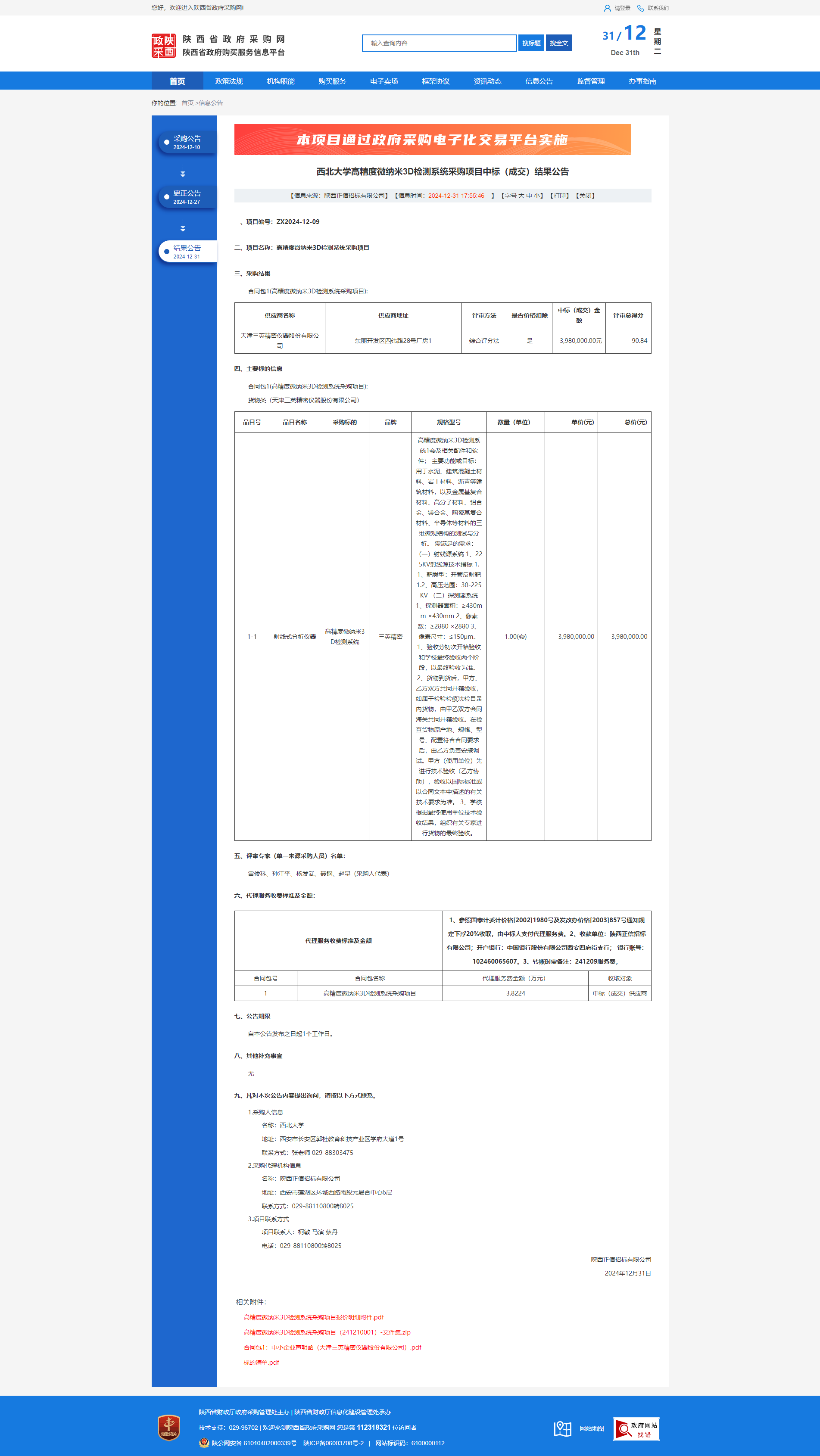 乐鱼网页版页面登录高精度微纳米3D检测系统采购项目中标(成交)结果公告