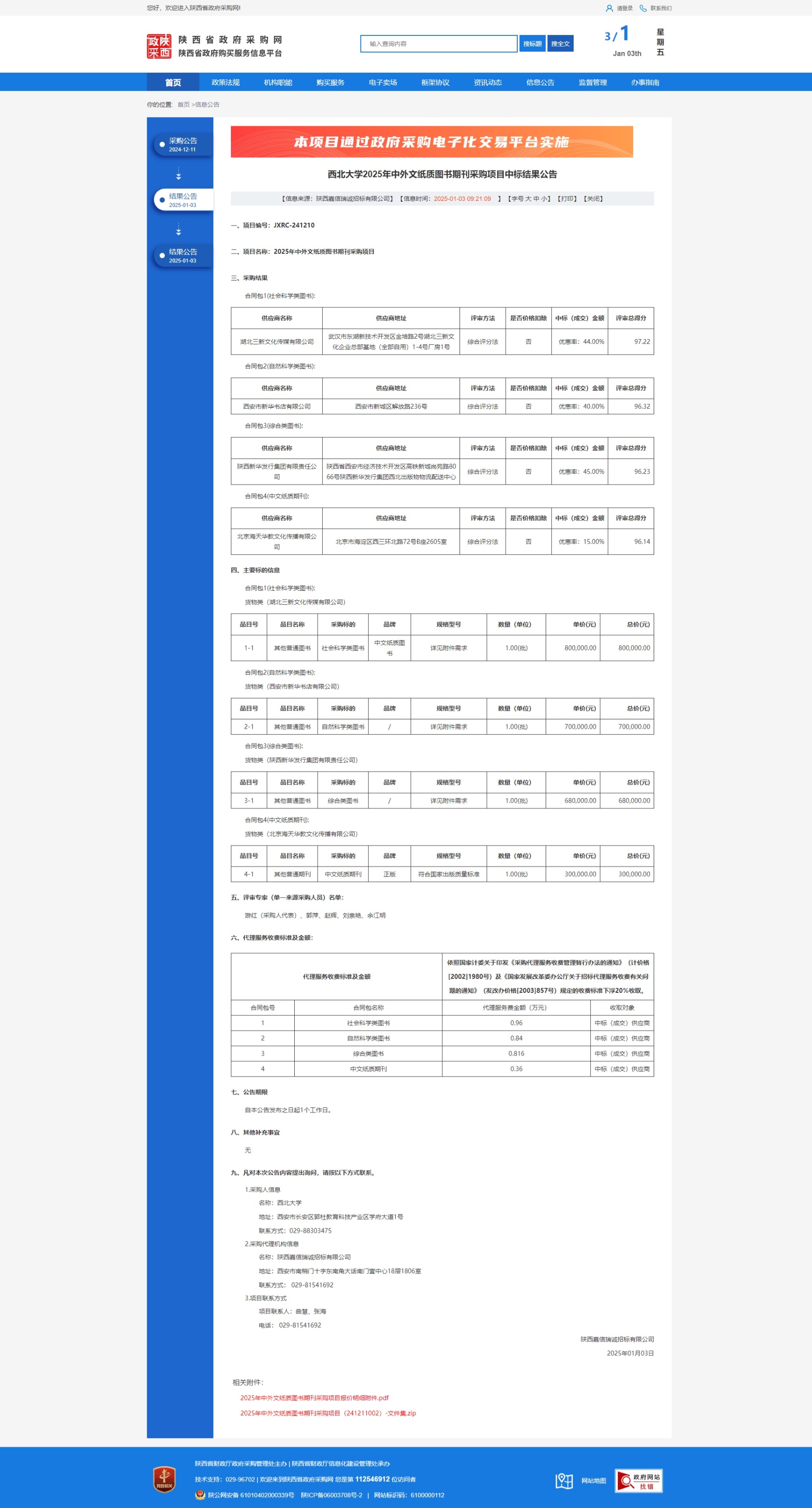 乐鱼网页版页面登录2025年中外文纸质图书期刊采购项目中标结果公告 作者: 编辑:薛利娟 时间:2025-01-03 原公告链接:https://www.ccgp-shaanxi.gov.cn/freecms/site/shaanxi/ggxx/info/2025/8a69c95d921859f0019429b635ac1b8f.html?noticeType=001021¬iceId=ac9e64e8-c972-11ef-8063-08c0eb20c666