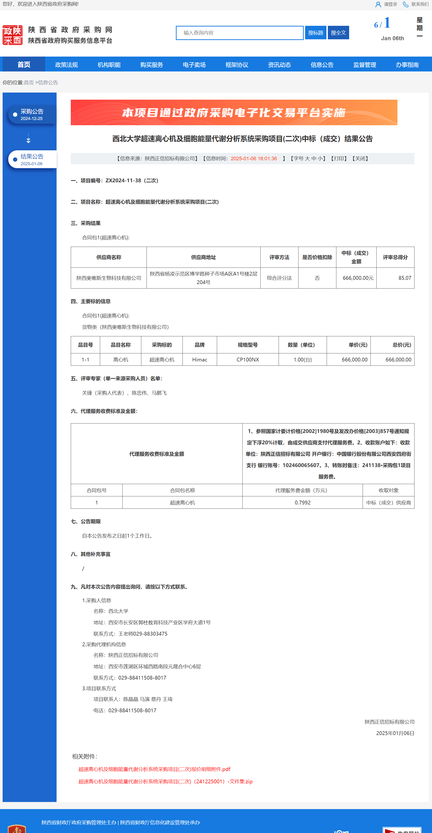 乐鱼网页版页面登录超速离心机及细胞能量代谢分析系统采购项目(二次)中标(成交)结果公告 作者:采购与招标办公室 编辑: 时间:2025-01-06 原公告链接:https://www.ccgp-shaanxi.gov.cn/freecms/site/shaanxi/ggxx/info/2025/8a69c2519218573701943b083d2b112d.html?noticeType=001026¬iceId=e26ca62a-cc16-11ef-8063-08c0eb20c666